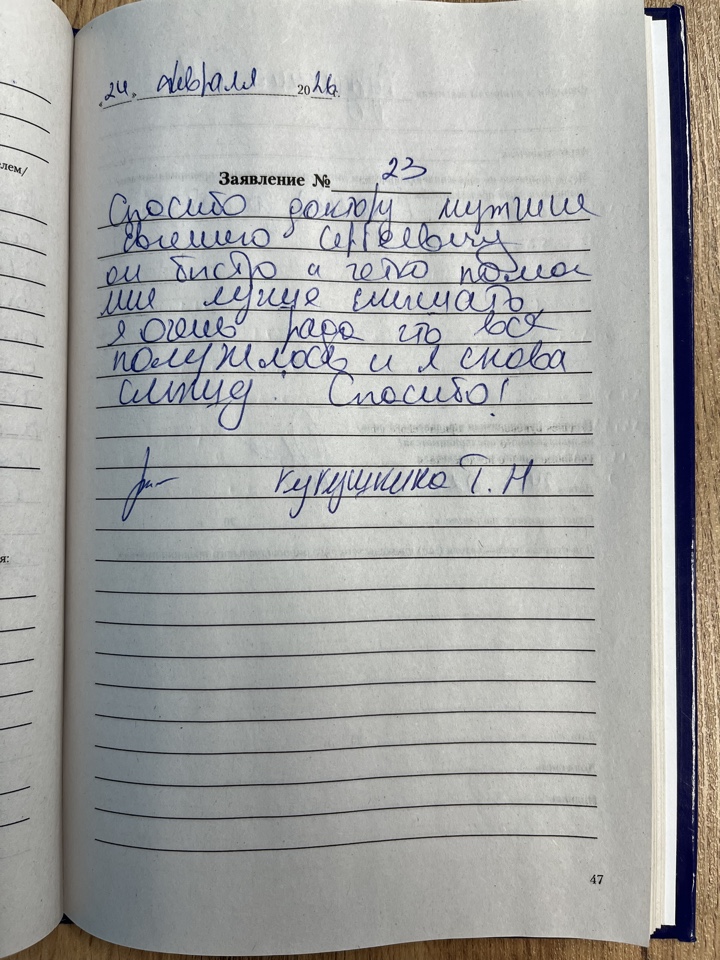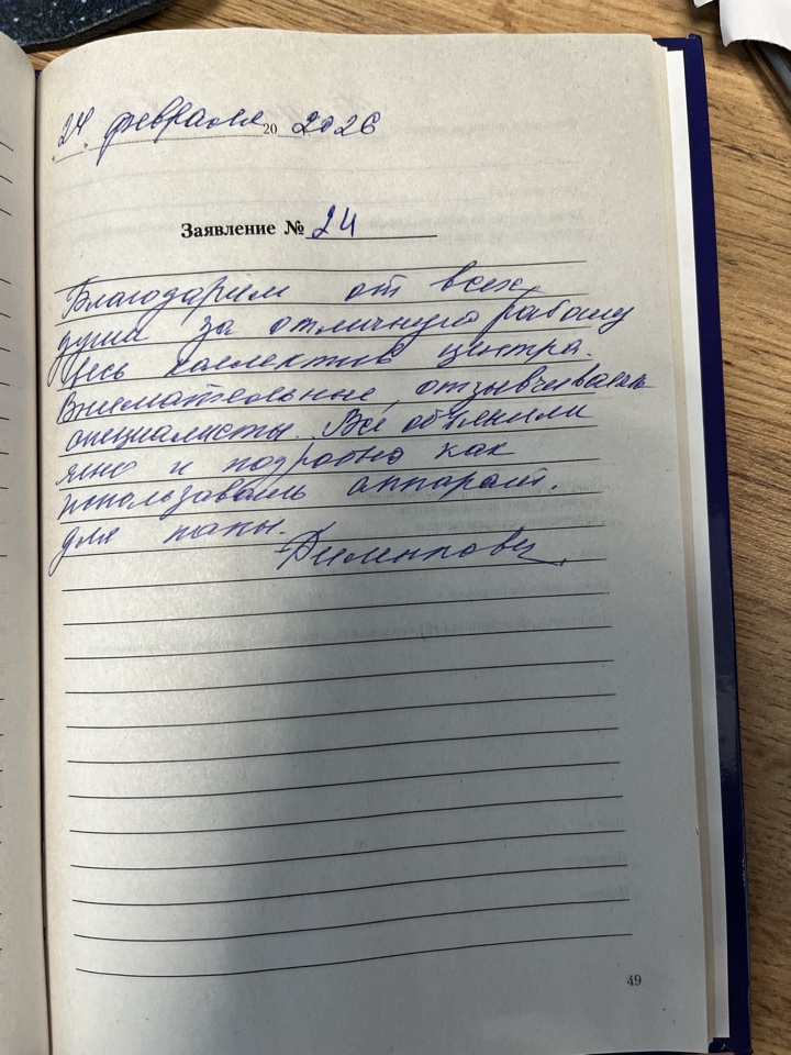 Благодарим от всех души за отличную работу весь коллектив центра. Внимательные, отзывчивые специалисты. Все обЪяснили ясно и подробно как использовать аппарат. для папы.