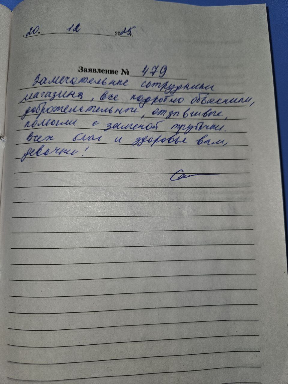 Замечательные сотрудники магазина, все подробно объяснили, доброжелательные, отзывчивые, помогли с заменой трубочки. Всех благ и здоровья вам, девочки! Самойлова О.В. г.Киров