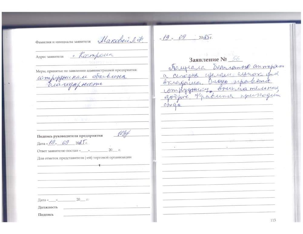 Огромное спасибо за честное отношение к своей работе. Хочется отметить доброжелательность, компетентность работников салона. Надеюсь на дальнейшее сотрудничество