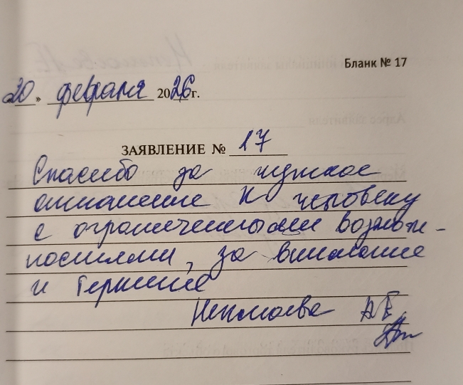 Спасибо за чуткое отношение к человеку с ограниченными возможностями, за внимание и терпение.