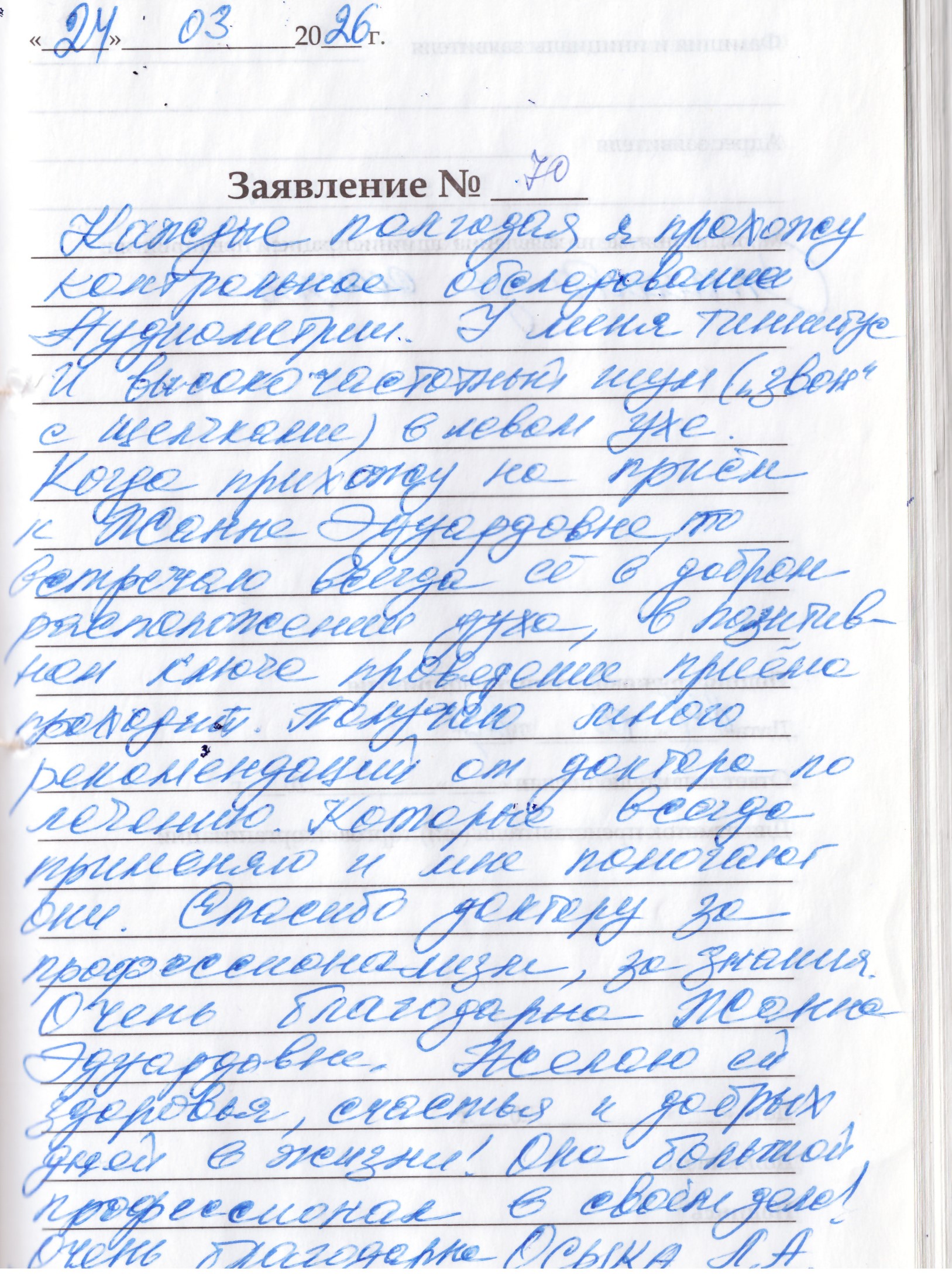 Каждые полгода я прохожу контрольное обследование аудиометрии.У меня тиннитус и высокочастотный шум(звон) в левом ухе.Когда прихожу на прием к Жанне Эдуардовне ,то встречаю ее доброе расположение духа,в позитивном ключе проведение приема .Получаю много рекомендаций по лечению,которое всегда применяю и мне помогает. Спасибо доктору за профессионализм,за знания.Очень благодарна Жанне Эдуардовне .Желаю ей здоровья,счастья,и добрых дней в жизни! Она большой профессионал в своем деле! Очень благодарна.