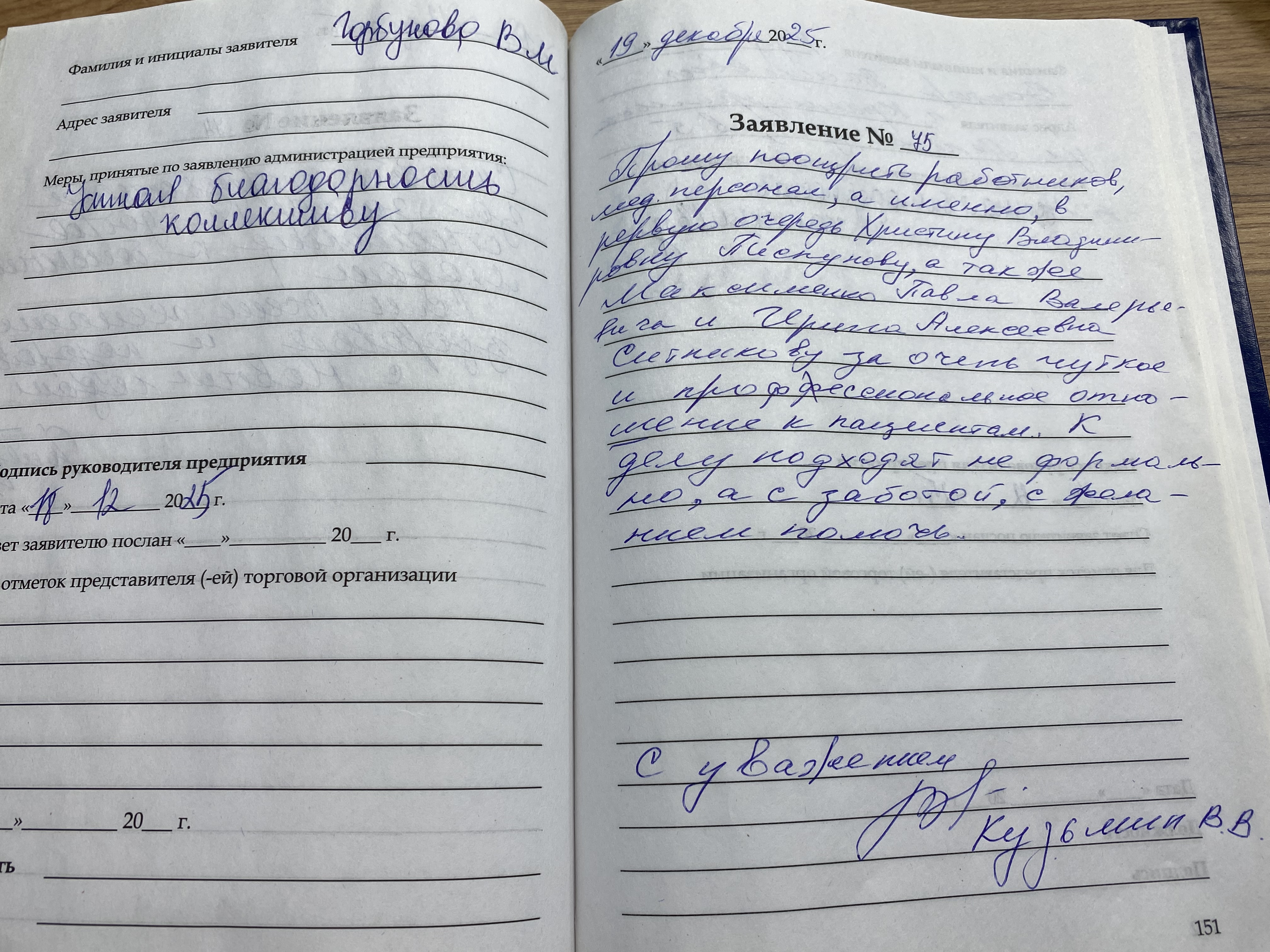 Прошу поощрить работников, мед. персонала, а именно в первую очередь Христину Владимировну Пискунову, а также Максименко Павла Валерьевича и Ирину Алексеевну Ситникову за очень чуткое и профессиональное отношение к пациентам. К делу подходят неформально, а с заботой, с желанием помочь. С уважением Кузьмин В.В.