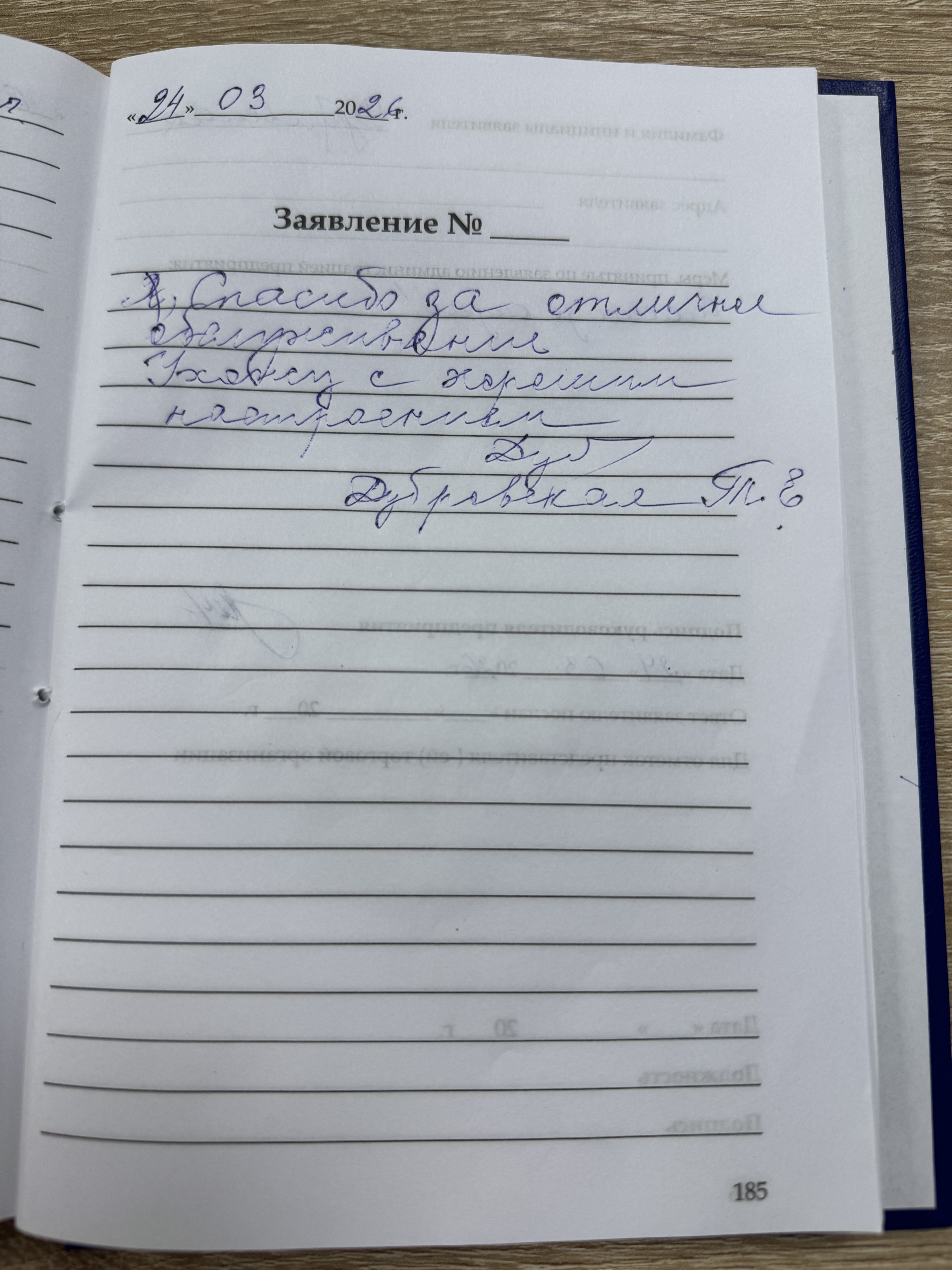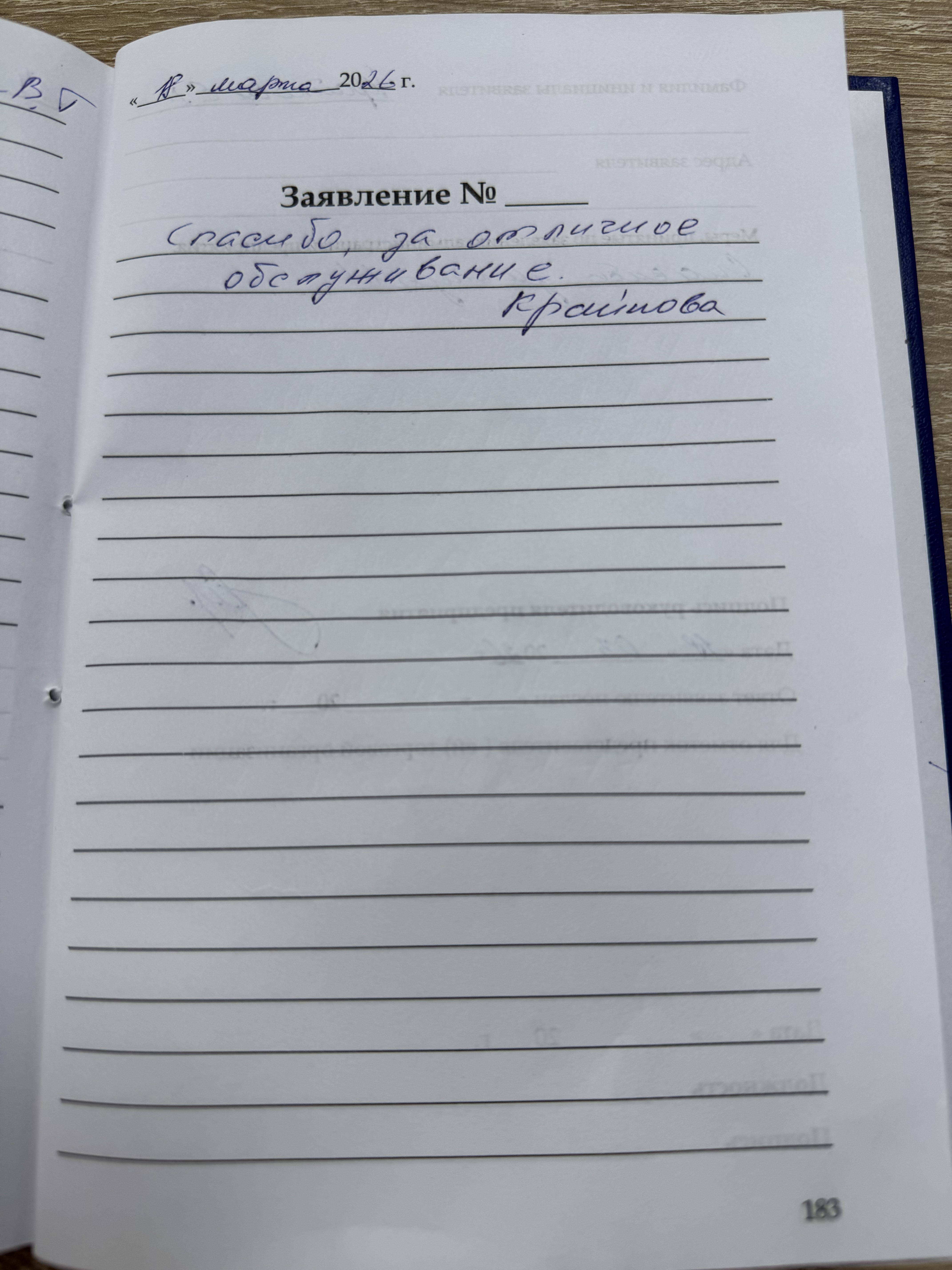 Спасибо за отличное обслуживание. Ухожу с хорошим настроением. Дубровская Т.Е.