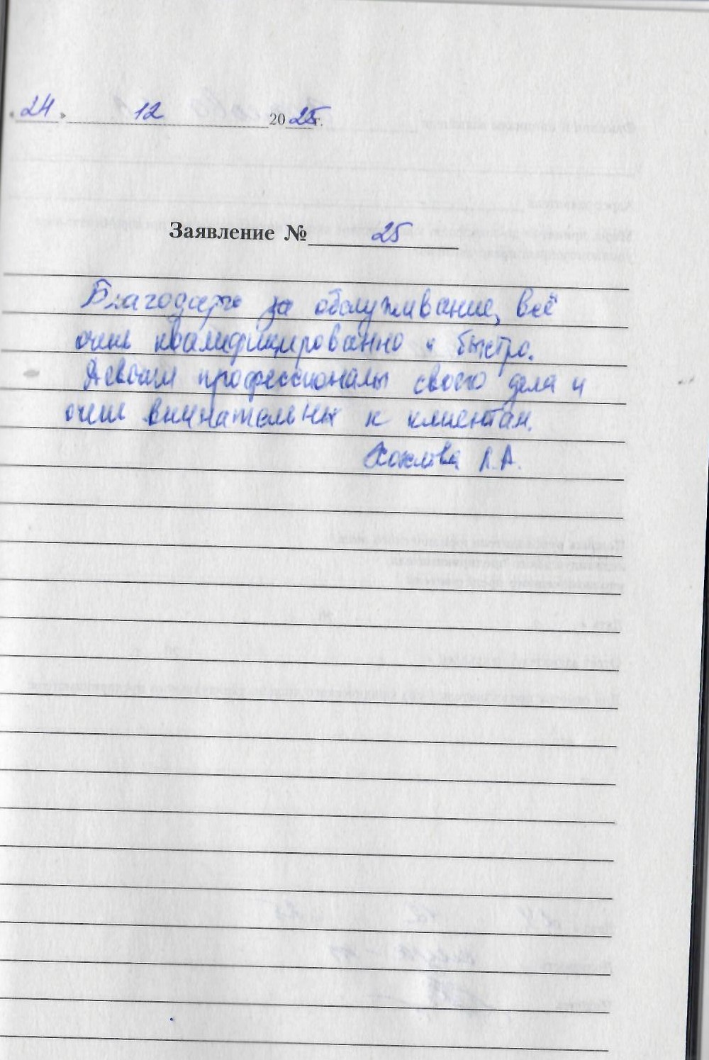 Благодарю за обслуживание, все очень квалифицированно и быстро. Девочки профессионалы своего дела и очень внимательны к клиентам.