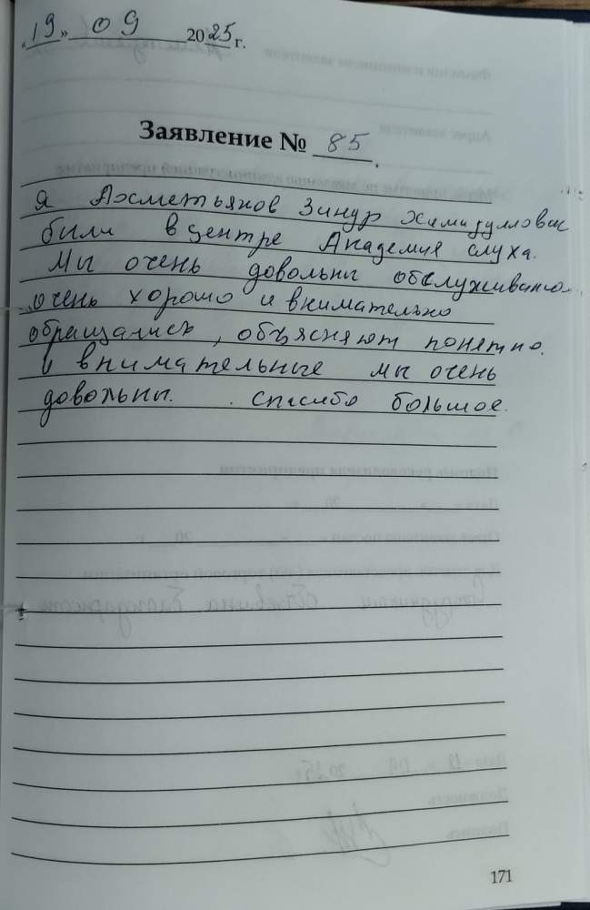 Мы, супруги, Гадельшина Гюзал Нургалеевна и Гадельшин Фанур Фаритович, были очень довольны приемом и обслуживанием при подборе слуховых аппаратов и выражаем благодарность "Академии слуха" и желаем всего хорошего