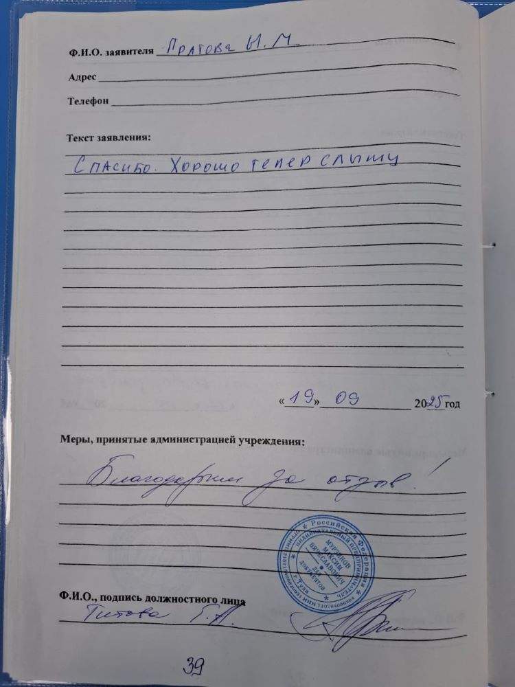 Была на приеме у Натальи Юрьевны из-за снижения слуха. прекрасный специалист по профилю, она мне проверила слух и слуховой аппарат отрегулировала, наладила аппарат., очень довольна её обслуживанием. Дай Бог ей здоровья, успехов. Прошу начальство отметить её отношение к больным. Я - врач с 50 летним стажем работы. Большое спасибо, Наталья Юрьевна. Будьте здоровы и счастливы, успехов.