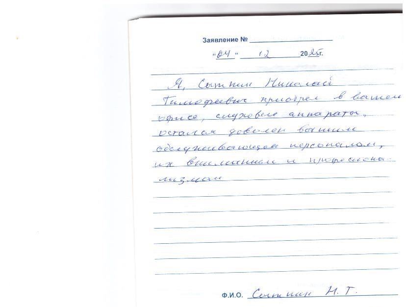 Я Сытник Николай Тимофеевич приобрел в вашем офисе слуховые аппараты, остался доволен вашим обслуживающим персоналом, их вниманием и профессионализмом.