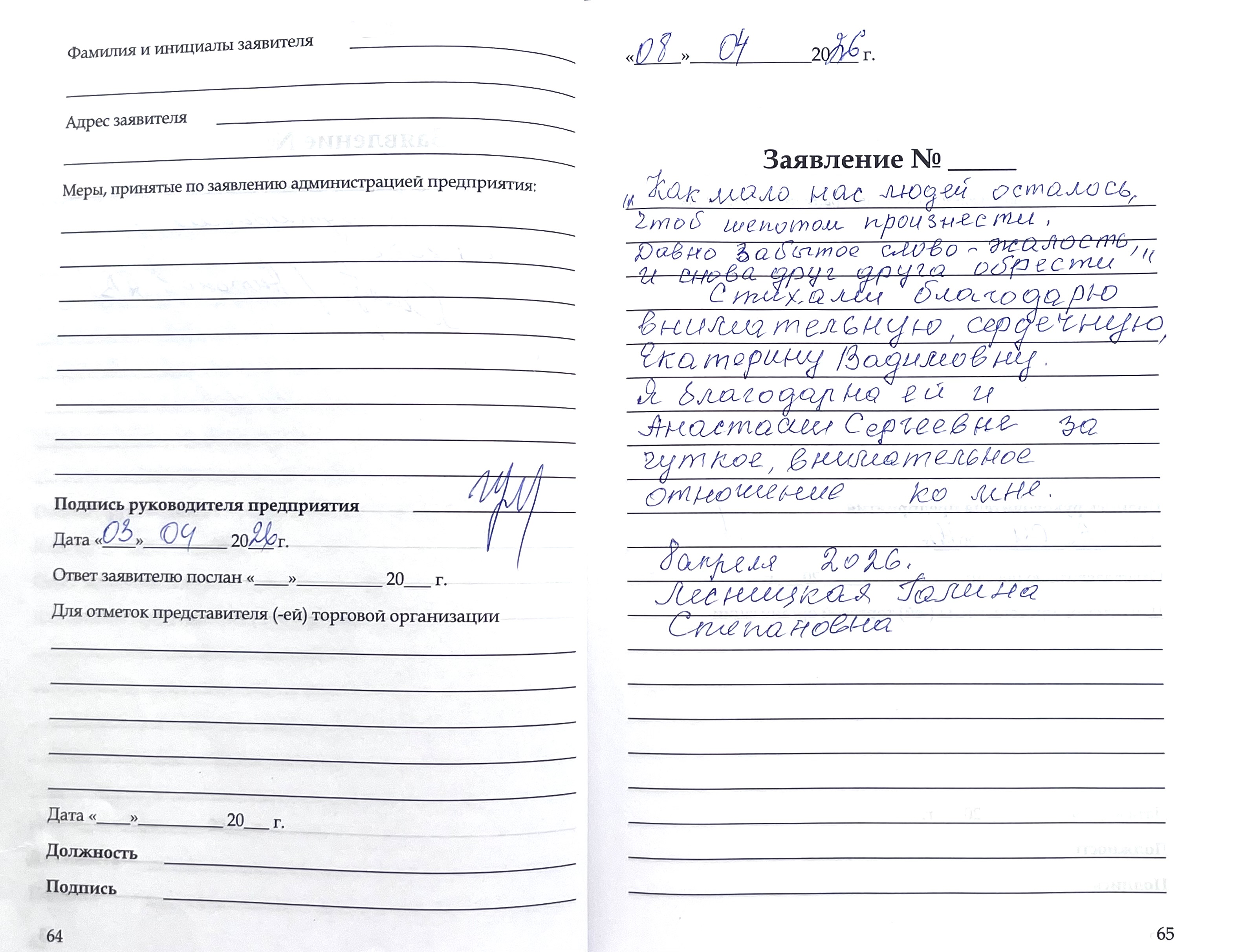 Стихами благодарю внимательную, сердечную Екатерину Вадимовну. Я благодарна ей и Анастасие Сергеевне за чуткое, внимательное отношение ко мне.