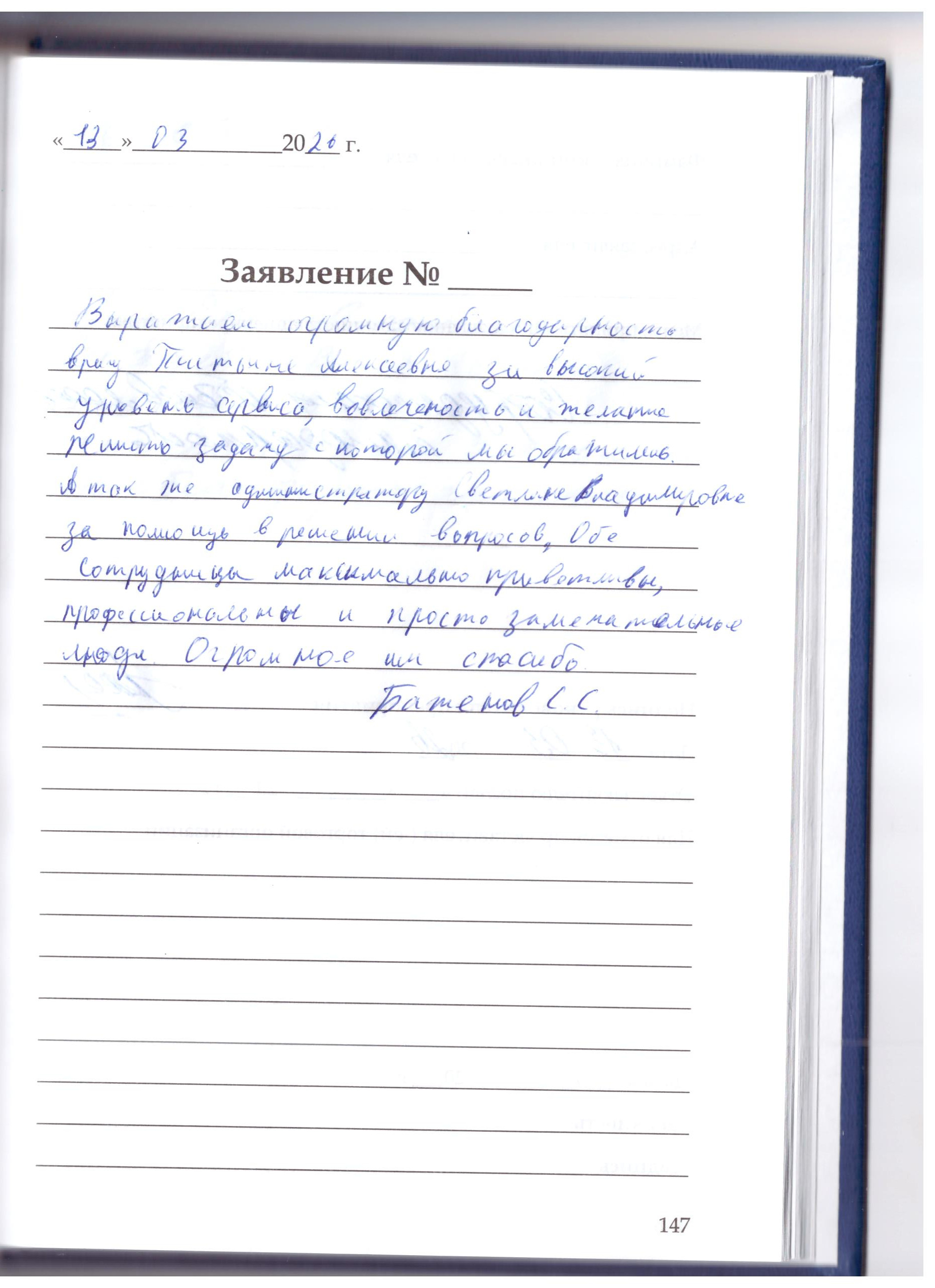 Приемом довольны, все прошло хорошо! Спасибо за профессиональзм. Магницкая З.М.