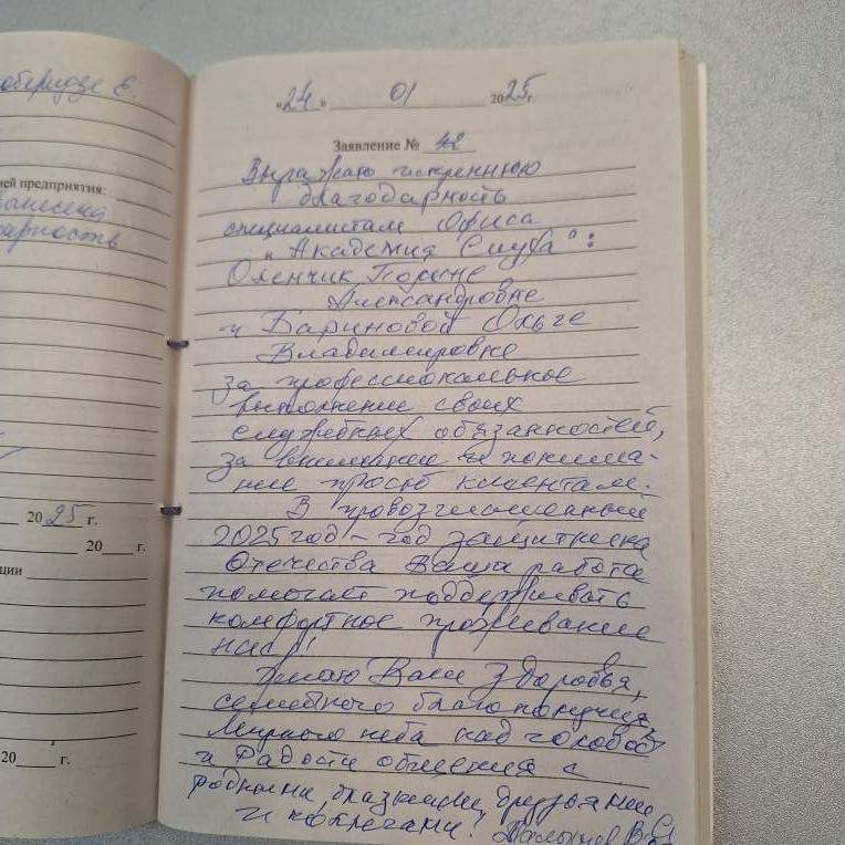 Выражаю искреннюю благодарность специалистам офиса "Академия слуха" : Оленчик Полине Александровне и Барановой Ольге Владимировне за профессиональное выполнение своих служебных обязанностей, за внимание и понимание просьб клиентов. В провозглашенный год 2025 год- год защитника Отечества Ваша работа помогает поддерживать комфортное проживание нас. Желаю Вам здоровья, семейного благополучия, мирного неба над головой и радости общения с родными, близкими, друзьями и коллегами. Малышев В.С.