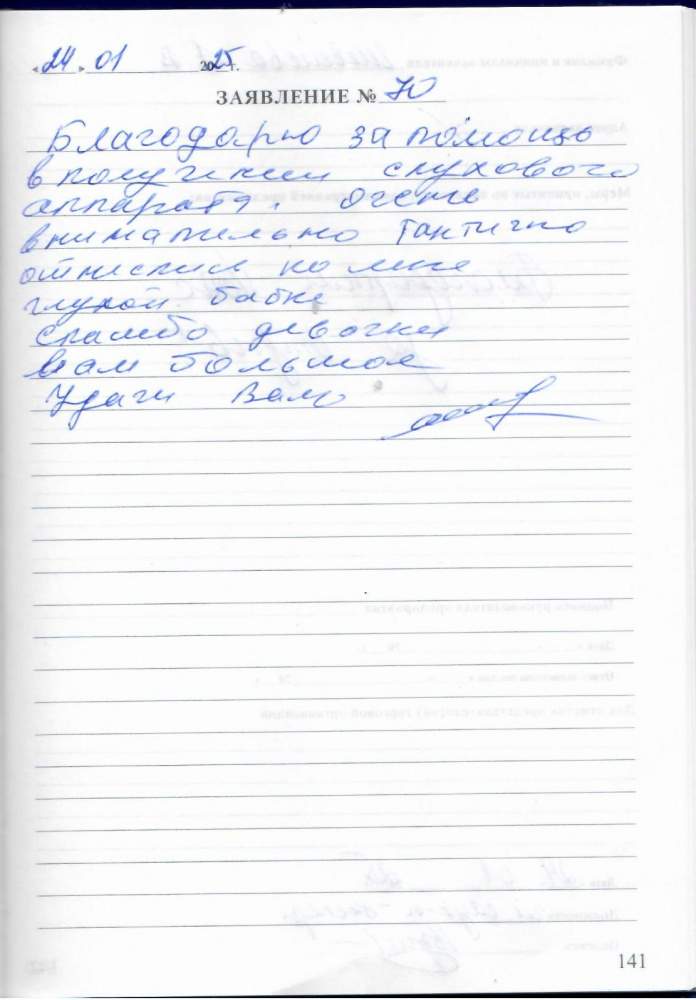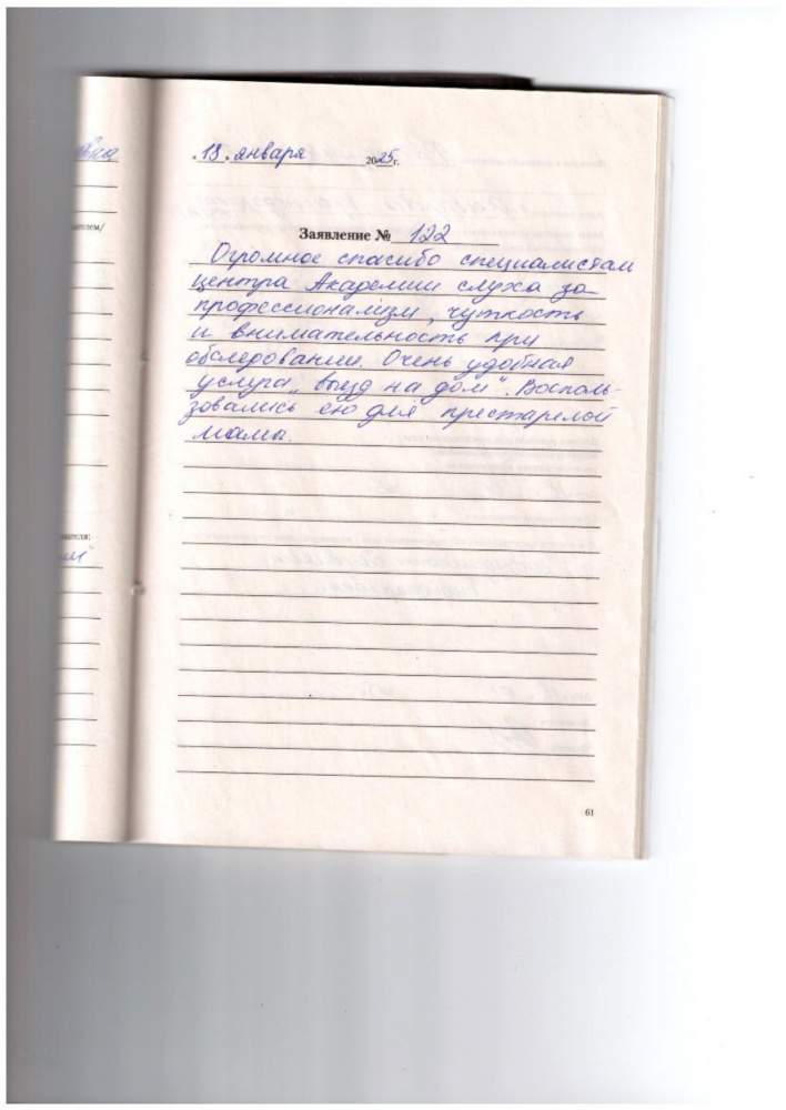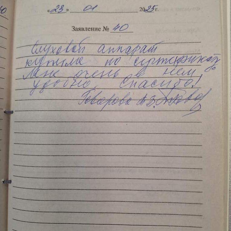 Благодарю за помощь в получении слухового аппарата. Очень внимательно, тактично отнеслись ко мне глухой бабке. Спасибо девочки вам большое. Удачи вам