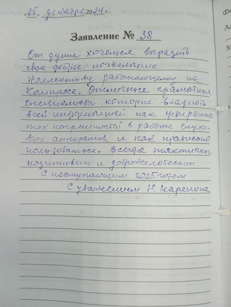 От души хочется выразить свое доброе пожелание коллективу работающему на Компросе. Отличные, грамотные специалисты, которые владеют всей информацией, как устранить тех. погрешностей в работе слуховых аппаратов и как правильно пользоваться. Всегда тактичные, позитивные и доброжелательные.