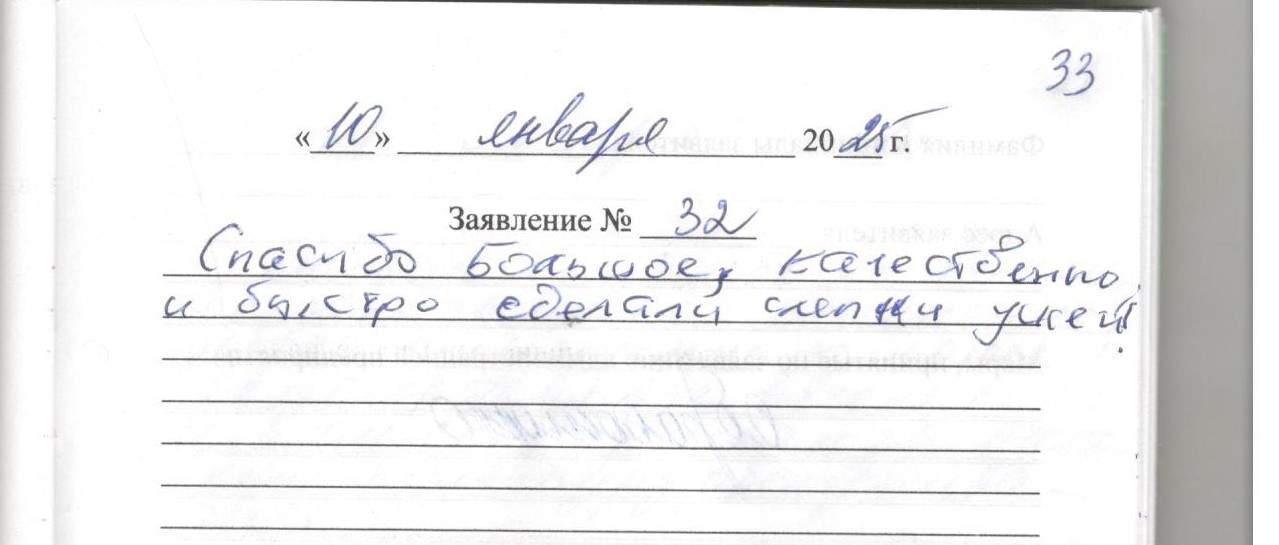 Выражаю благодарность Людмиле Александровне за прекрасное обслуживание .Я даже такого не ожидала ,что можно прийти и тебя в этот же день обслужат и все сделают .Очень благодарю! Пенсионер-инвалид Л.И. Огородникова