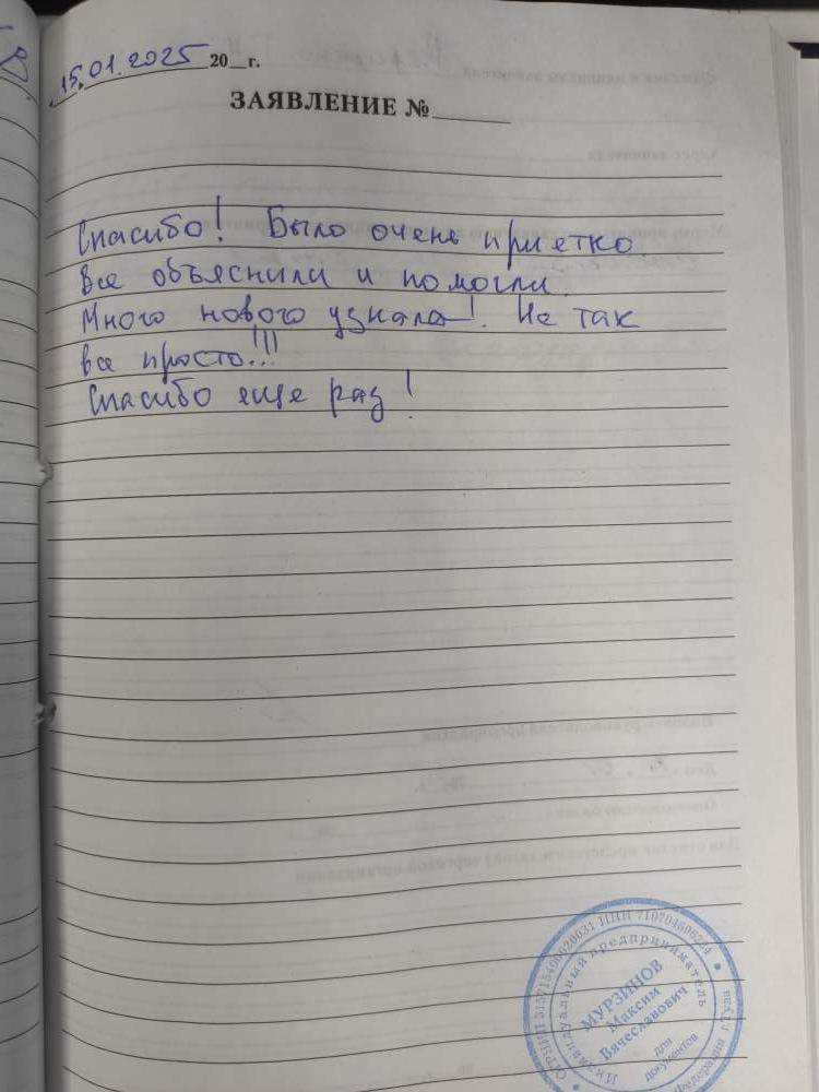 Все очень понравилось, отличная консультация, внимательное отношение, благодарность за услугу.