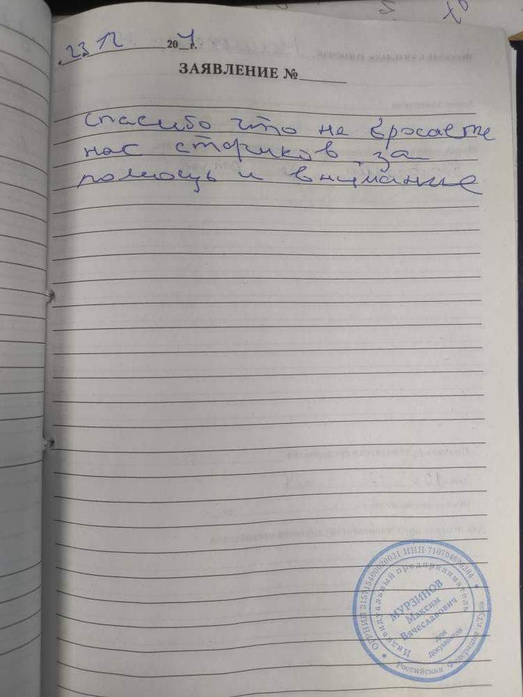 Спасибо что не бросаете нас стариков, за помощь и внимание.
