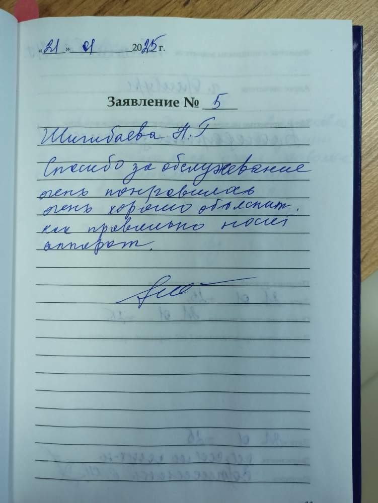 Шитбаева Н.Г. Спасибо за обслуживание, очень понравилась, очень хорошо объяснили, как правильно носить аппараты.