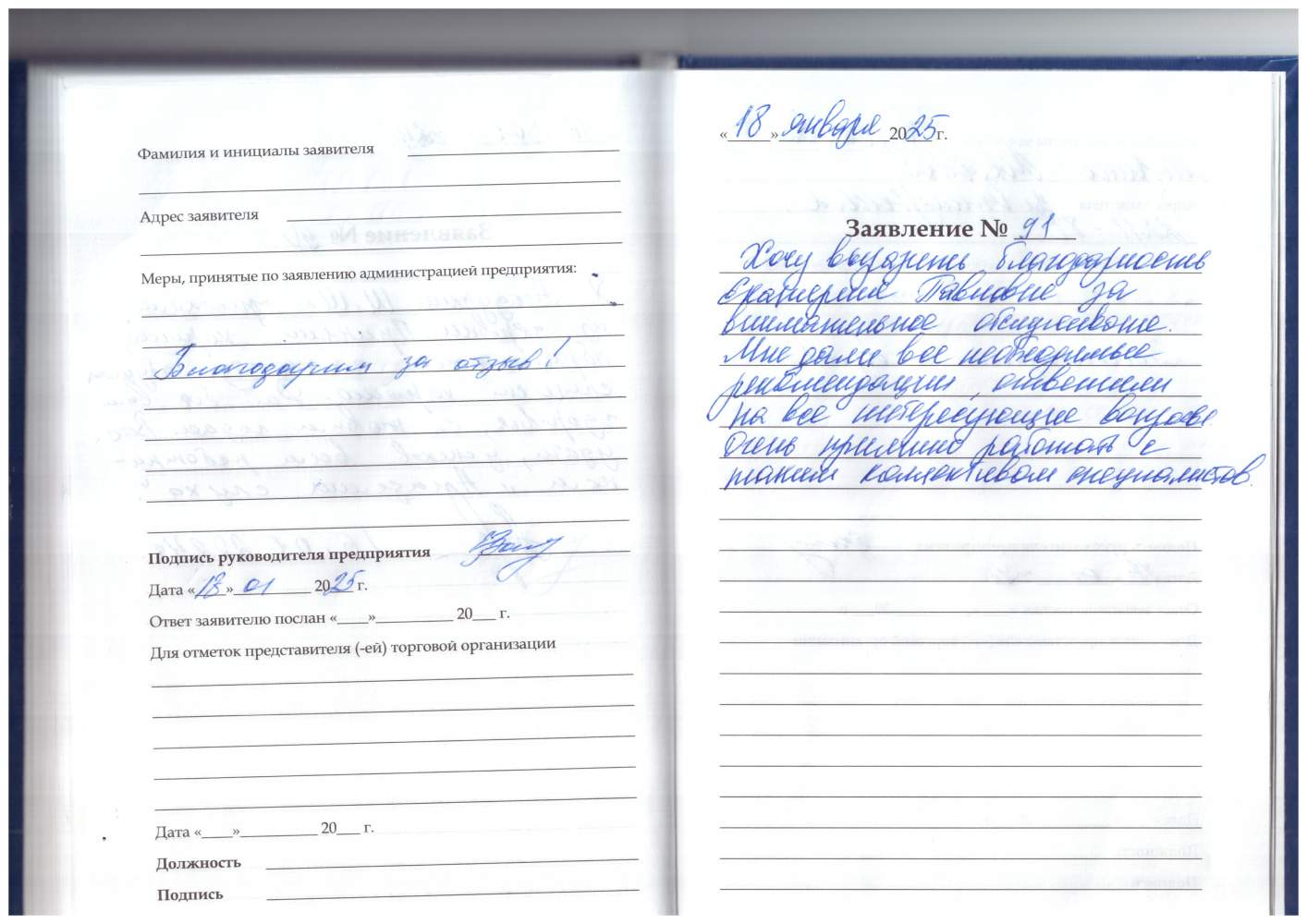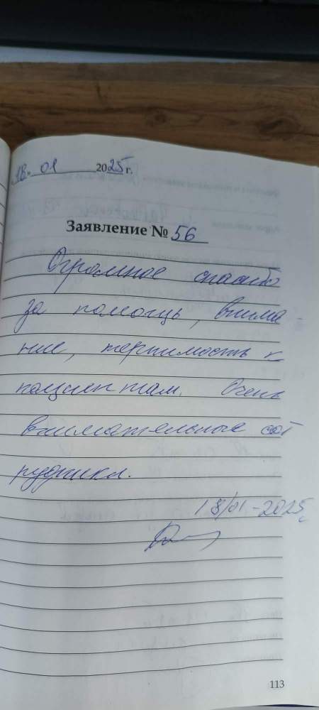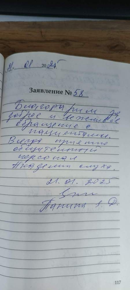 Огромное спасибо за помощь, внимание, терпимость к пациентам. Очень внимательные сотрудники. 18.01.2025г.