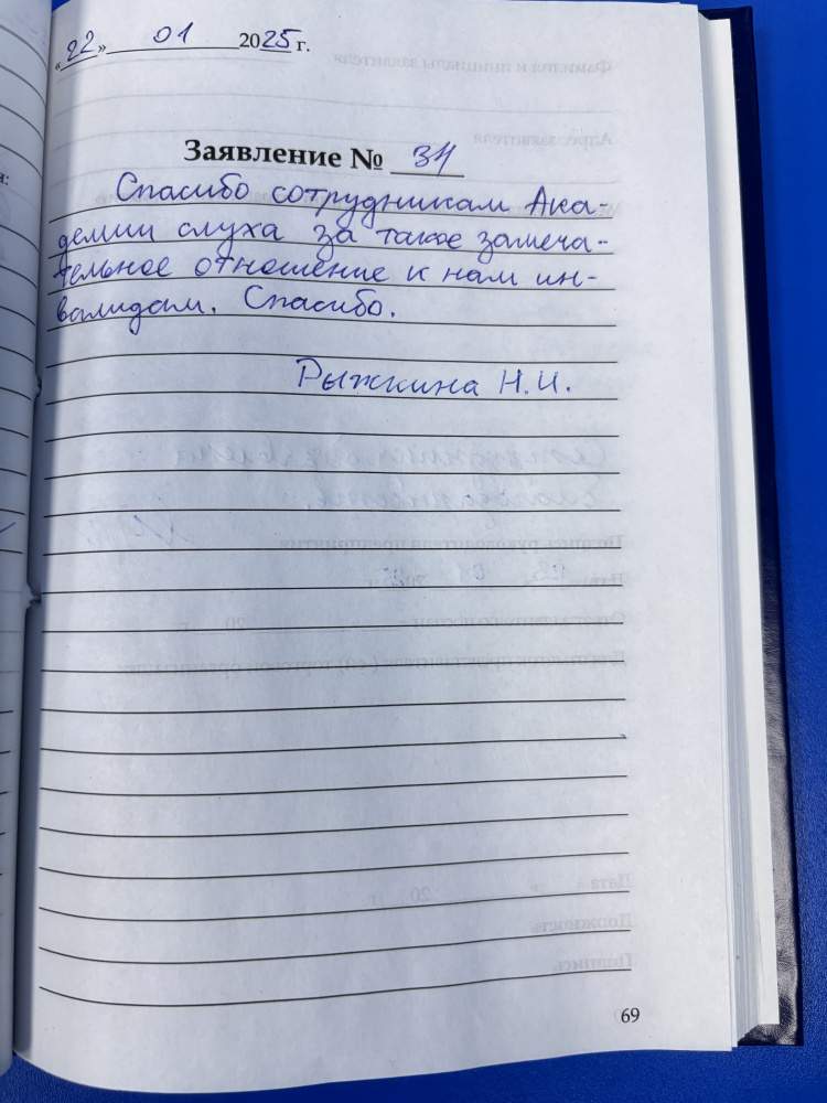 Спасибо сотрудникам Академии слуха за такое замечательное отношение к нам инвалидам. Спасибо.