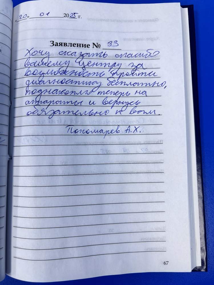 Хочу сказать спасибо вашему центру за возможность пройти диагностику бесплатно, поднакоплю теперь на аппараты и вернусь обязательно к вам.