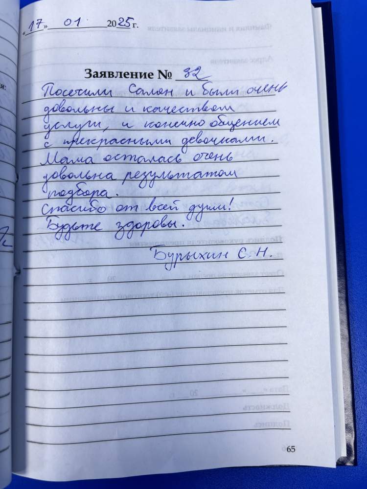 Посетили Салон и были очень довольны и качеством услуги, и конечно общением с прекрасными девочками. Мама осталась очень довольна результатом подбора. Спасибо от всей души! Будьте здоровы.