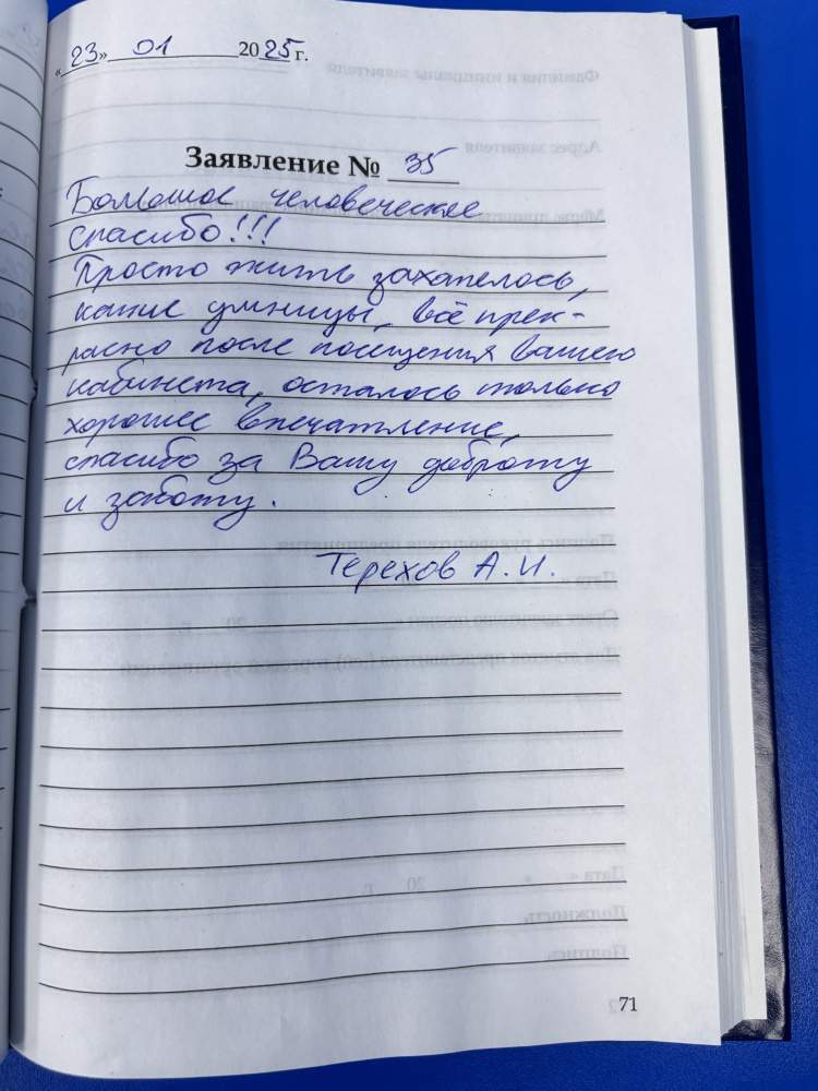 Большое человеческое спасибо!!! Просто жить захотелось, какие умницы, всё прекрасно после посещения вашего кабинета, осталось только хорошее впечатление, спасибо ща Вашу доброту и заботу.