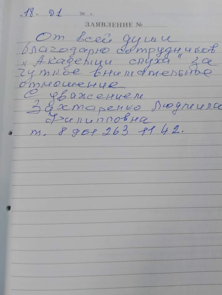Спасибо большое коллективу Академии слуха за подбор аппарата слухового.