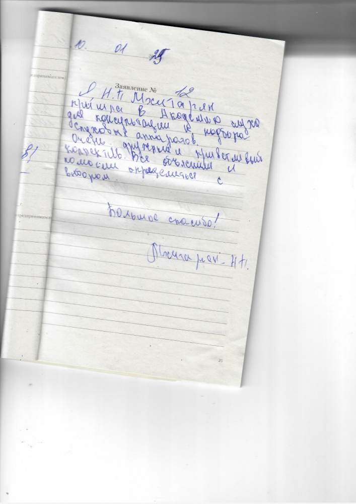 Я Мхитарян Н.П пришла в Академию Слуха для консультации и подбора слуховых аппаратов. Очень дружный и приветливый коллектив. Все объяснили и помогли определиться с выбором.