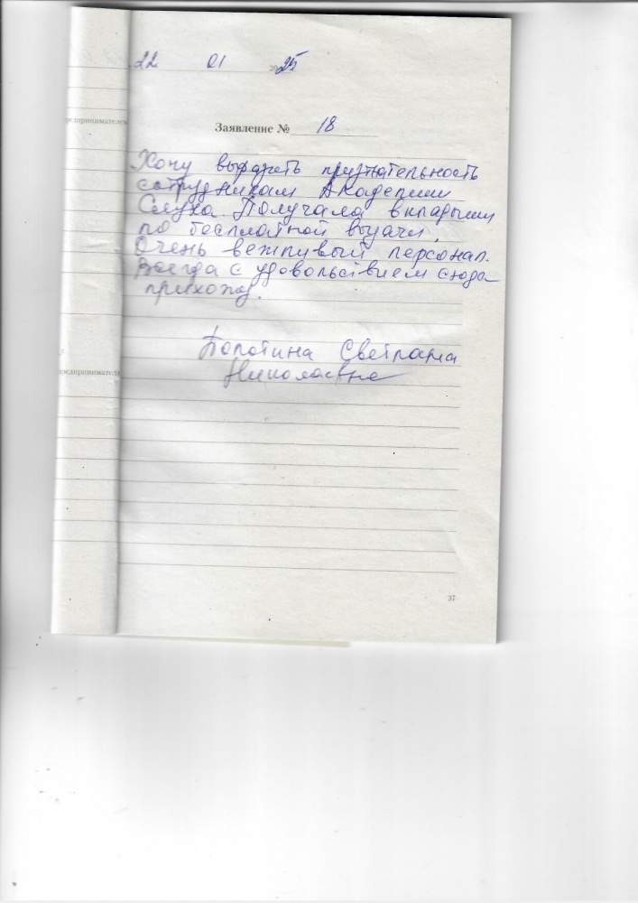 Хочу поблагодарить за внимательное отношение, профессионализм, приятное общение.
