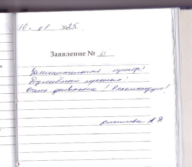 Очень хорошо обращалась с нами главный специалист Олеся Владимировна. Общалась на спокойных тонах, хотелось бы пожелать удачи, успехов в работе, крепкого здоровья и процветания.