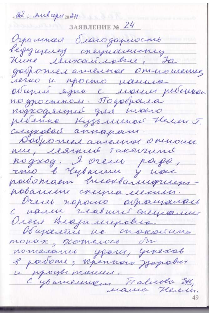 Огромная благодарность ведущему специалисту Нине Михайловне за доброжелательное отношение. Легко и просто нашла общий язык с моим ребенком подростком. Подобрала подходящий для моего ребенка Кузьминой Нелли Г. слуховой аппарат.
