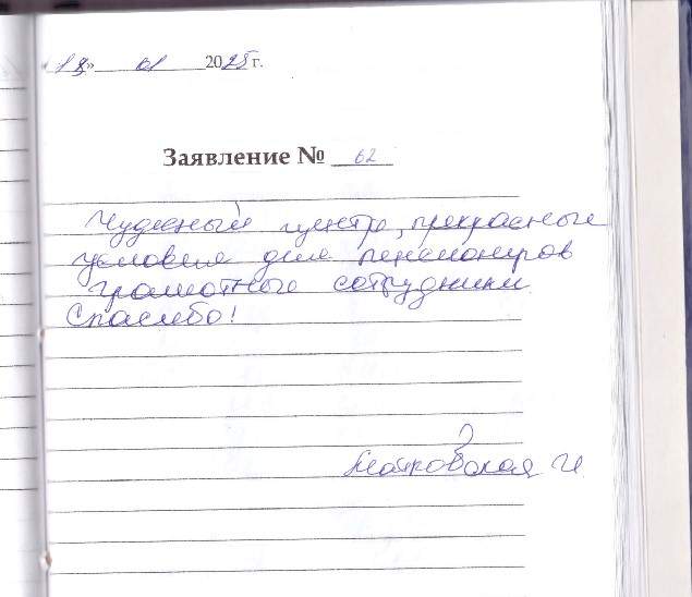 Чудесный центр, прекрасные условия для пенсионеров, грамотные сотрудники. Спасибо!
