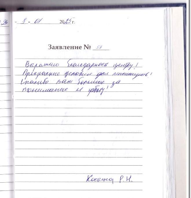 Выражаю благодарность центру! Прекрасные условия для клиентов! Спасибо вам большое за понимание и заботу!
