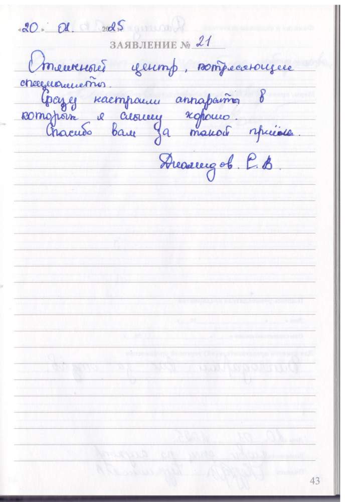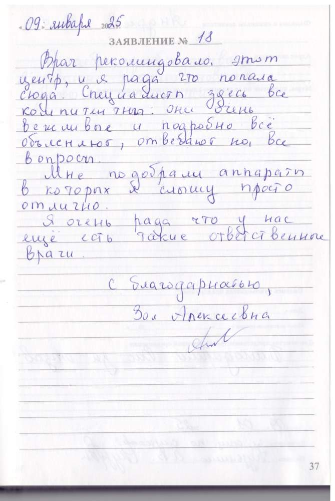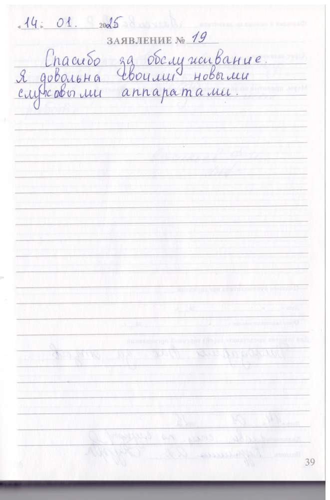 Спасибо за обслуживание. Я довольна своими новыми слуховыми аппаратами.