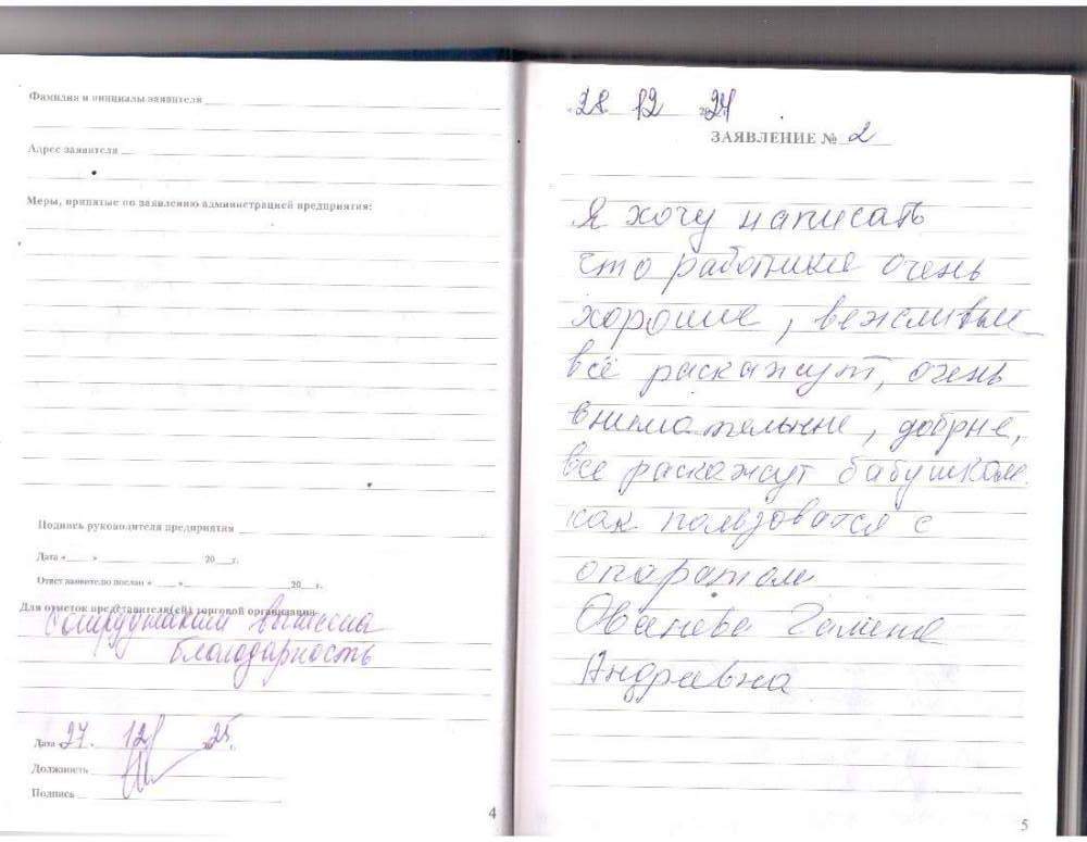 Я хочу написать, что работники очень хорошие, вежливые всё расскажут, очень внимательные, добрые, всё расскажут бабушкам. Как пользоваться с аппаратом.