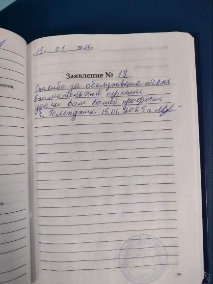 Спасибо за обслуживание, очень внимательный персонал, удачи вам вашей профессии. Из г Геленджика