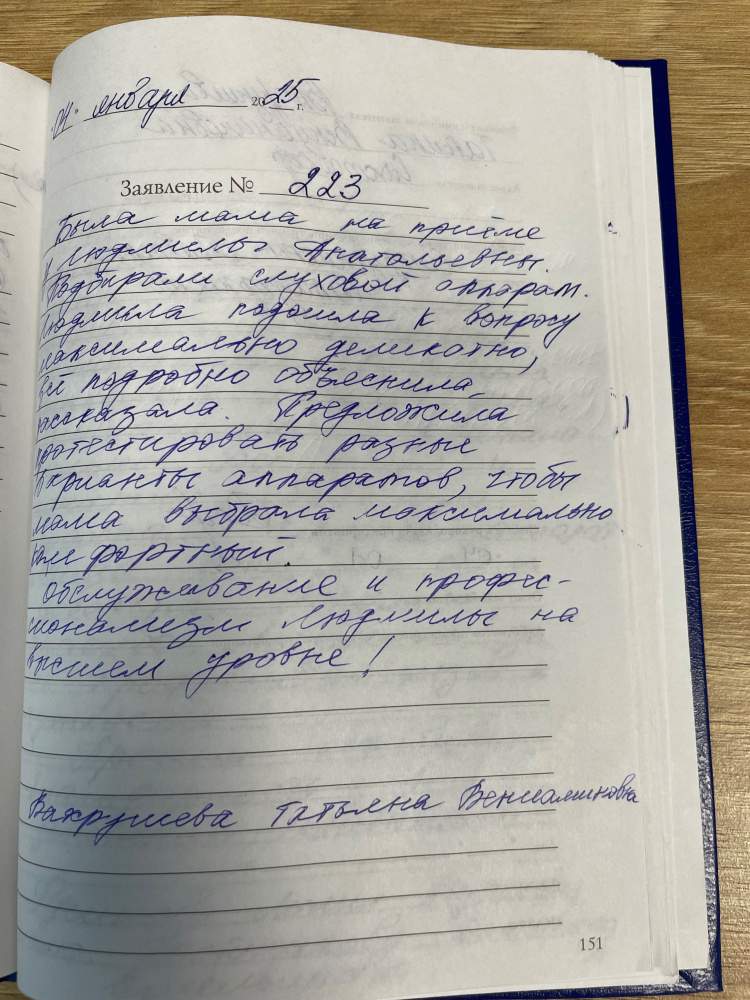 24.12.2024 Кукольщикова Любовь Сергеевна г Сыктывкар, были на приёме, делали слух работу. Остались довольны.