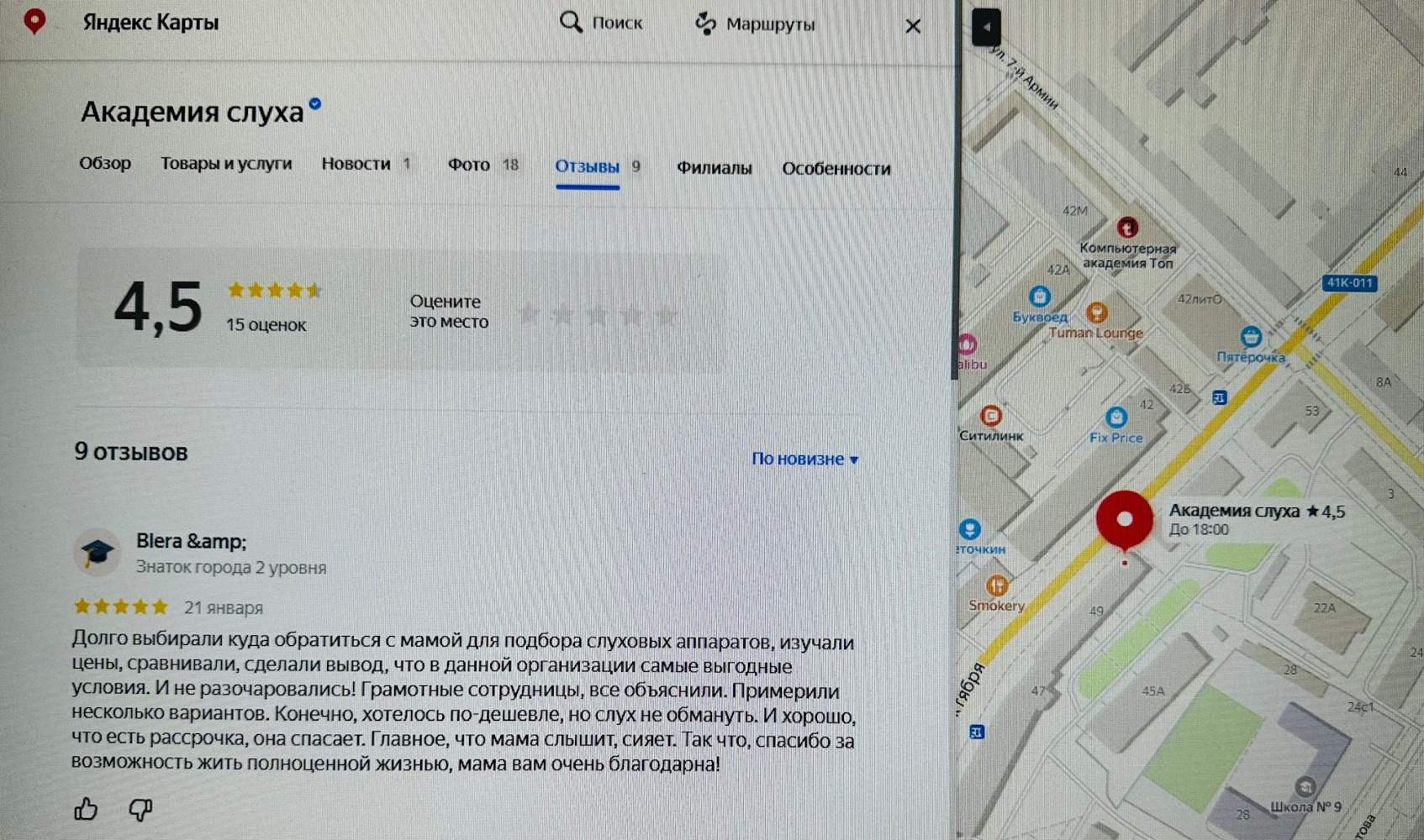 Я, Белянина Татьяна Александровна, посетила "Академию Слуха". Приятное и профессиональное обслуживание. Спасибо за помощь.