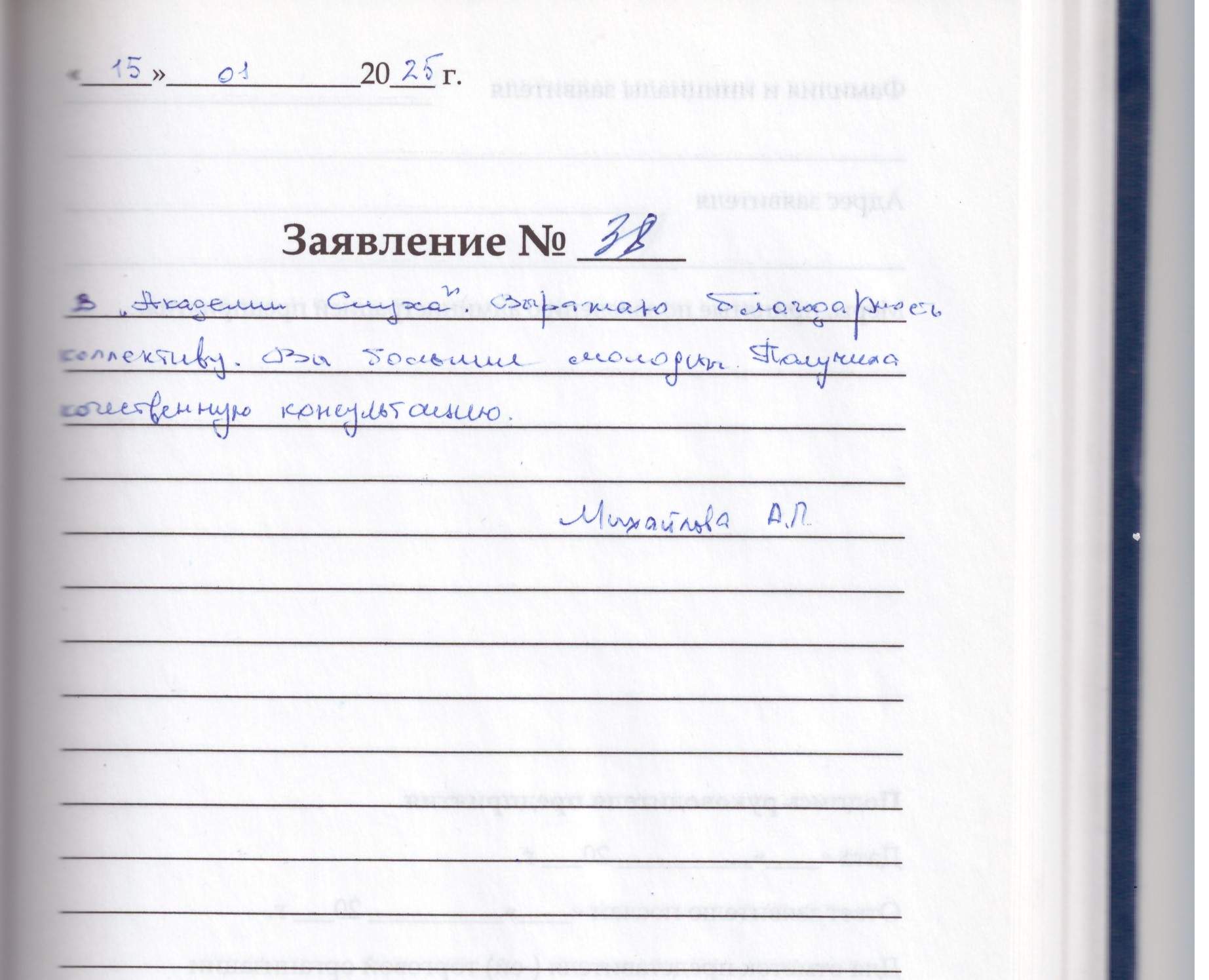 В "Академии Слуха". выражаю благодарность коллективу.Вы большие молодцы. получила качественную консультацию.