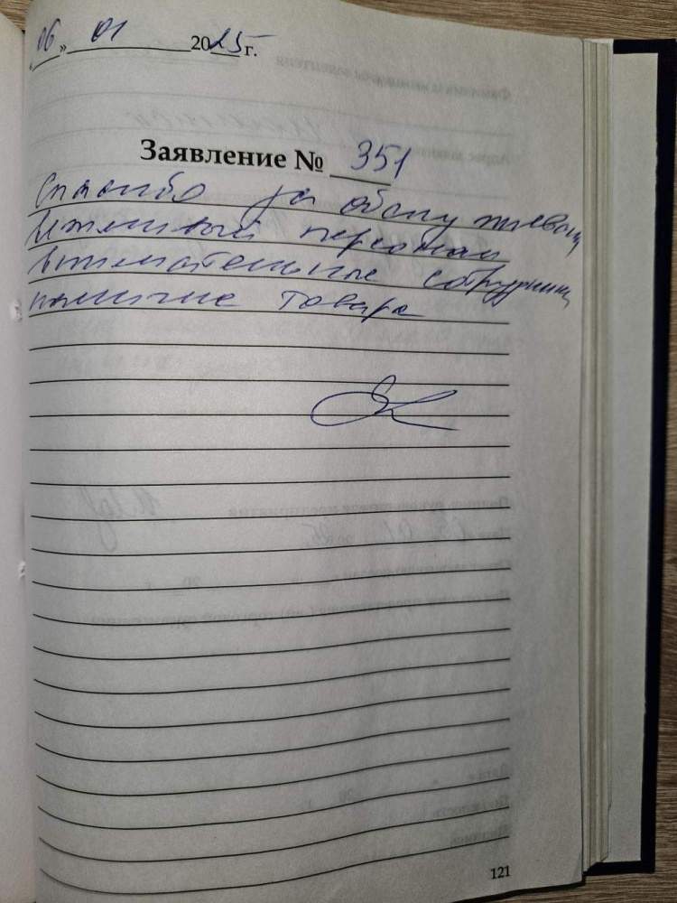 Спасибо за обслуживание, вежливый персонал внимательные сотрудники, наличие товара. Устюгов О.Г., г. Нолинск