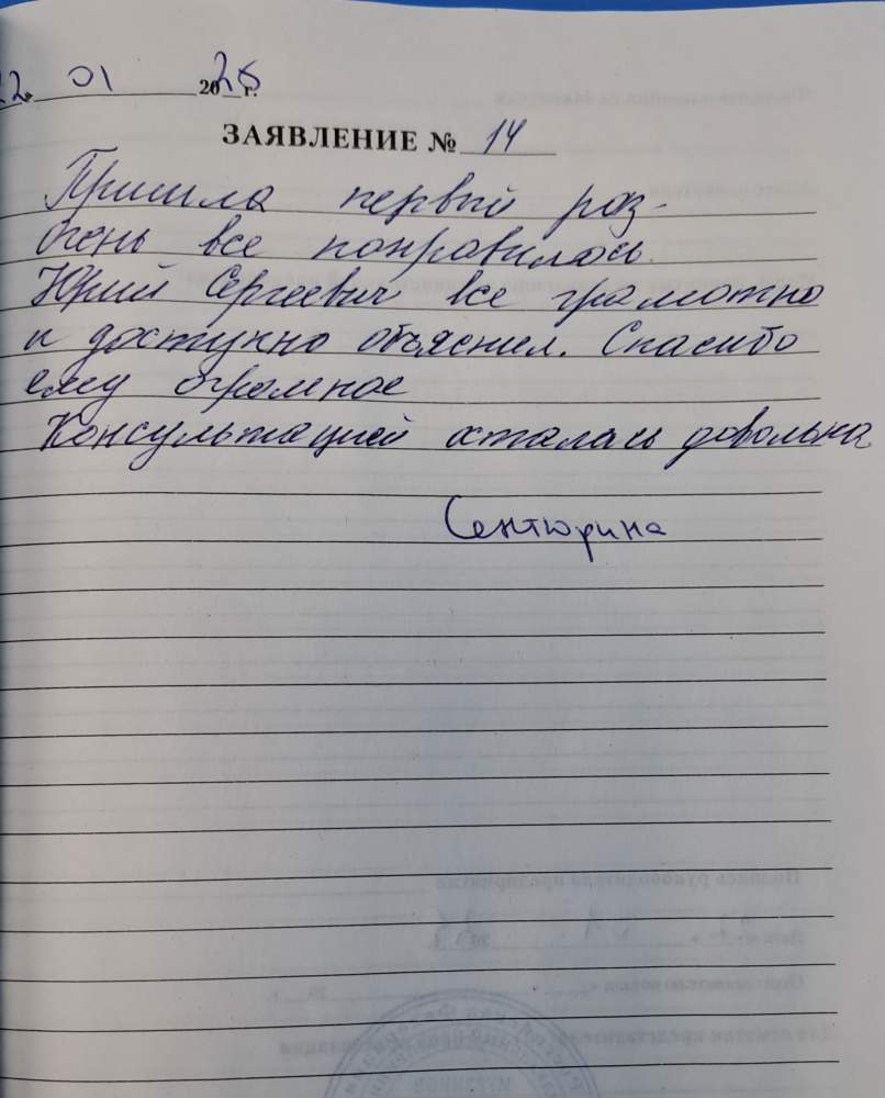 Были на приеме с мамой 21.01.2025. Огромное спасибо специалисту Юрию Сергеевичу. Грамотный, чуткий, добрый, отзывчивый человек, первоклассный специалист. Спасибо, всего доброго, наилучшего