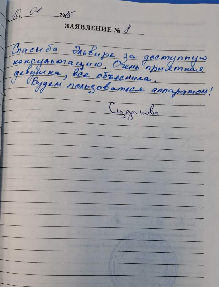 Спасибо Эльвире за доступную информацию. Очень приятная девушка, все объяснила. Будем пользоваться аппаратом.