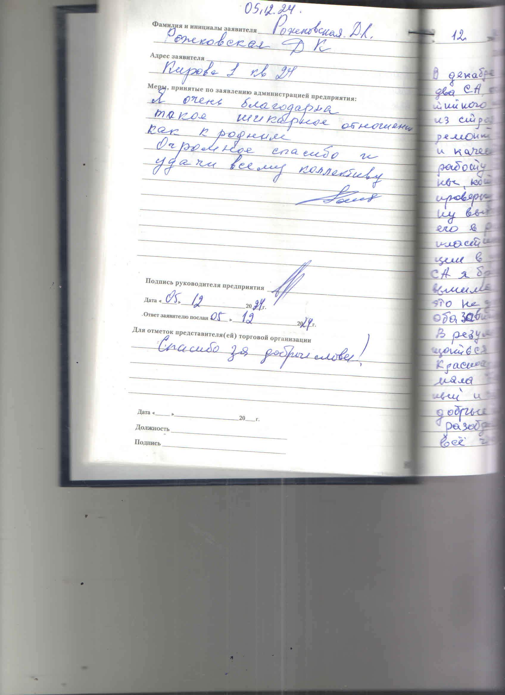Я очень благодарна такое шикарное отношение как родным.Огромное спасибо и удачи всему всему коллективу