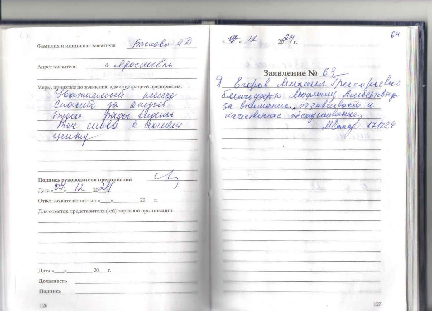 Я Егоров Михаил Григорьевич благодарю Людмилу Альбертовну за внимание, отзывчивость и качественное обслуживание.