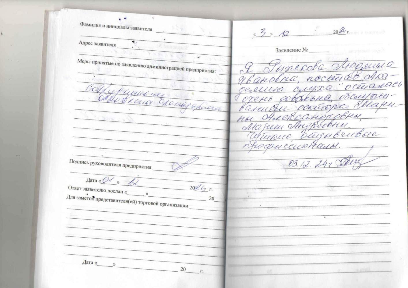 22.12.24г. при подборе аппарата сотрудник Аканеева Анастасия Николаевна проявила профессиональную внимательность к назревшей проблеме. Благодарю за чуткое отношение.