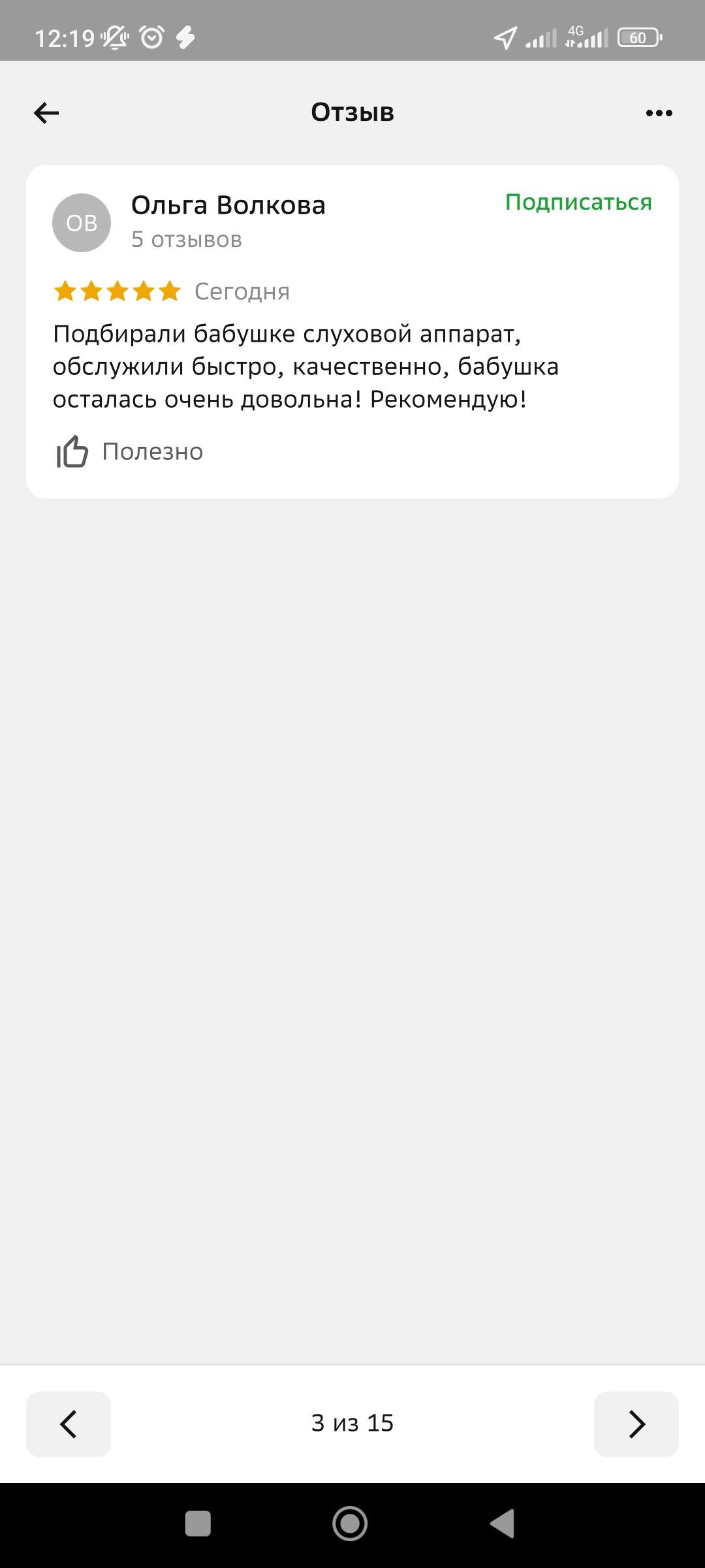 Подбирали бабушке слуховой аппарат, обслужили быстро, качественно, бабушка осталась очень довольна! Рекомендую!