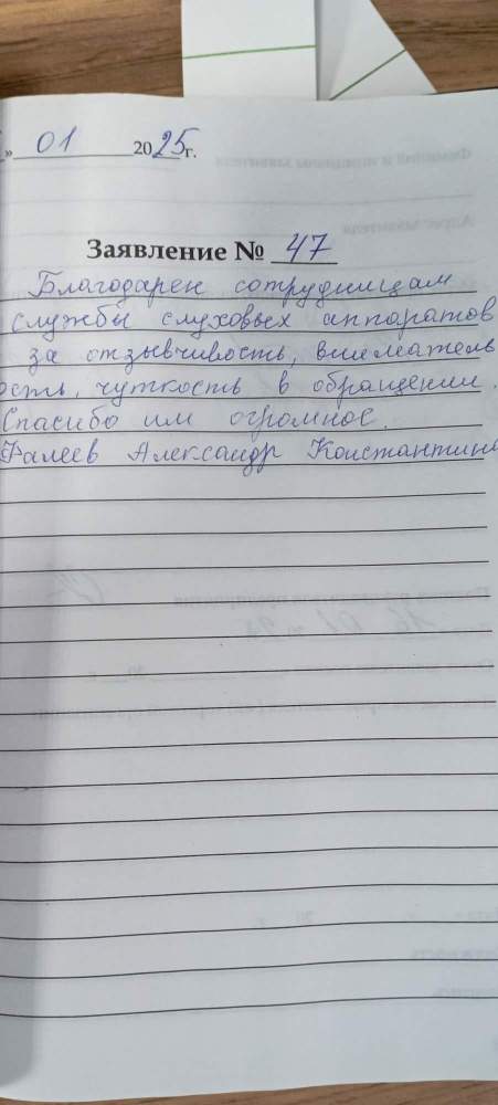 Благодарен сотрудницам службы слуховых аппаратов за отзывчивость, внимательность, чуткость в обращении. Спасибо им огромное.