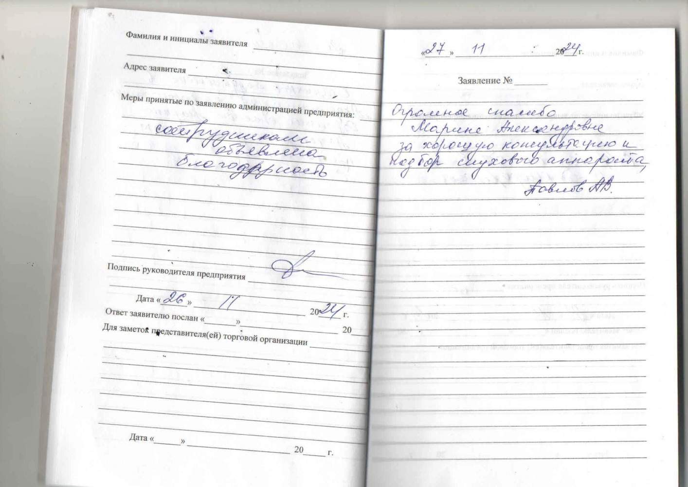 - Заявка на рассрочку