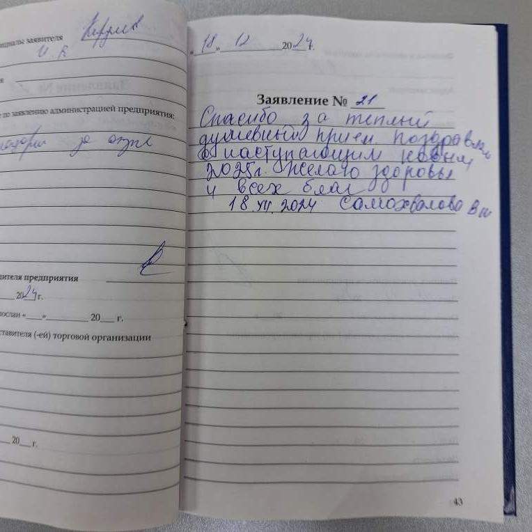 Спасибо за теплый душевный прием. Поздравляю с новым 2025. Желаю здоровья и всех благ.