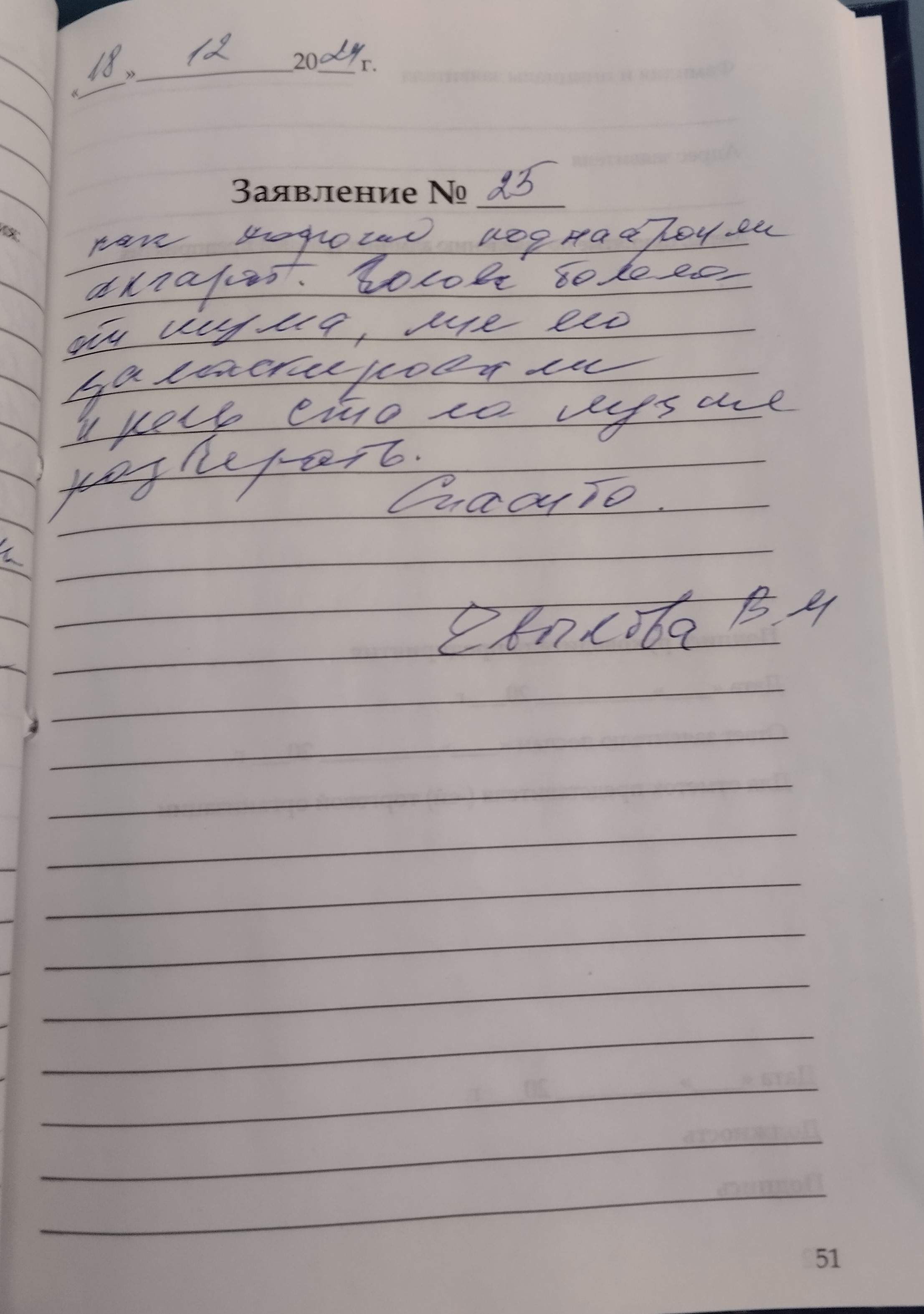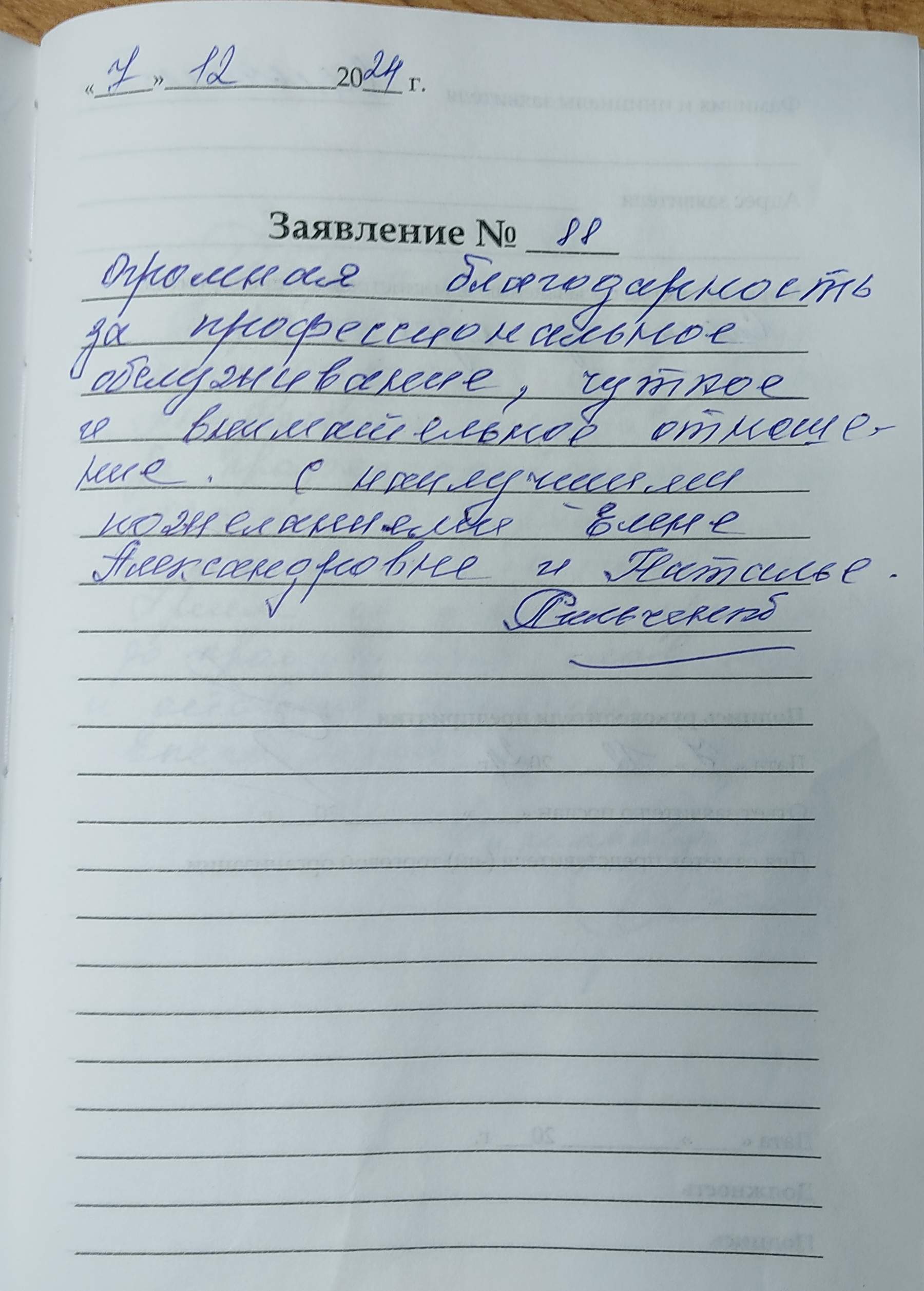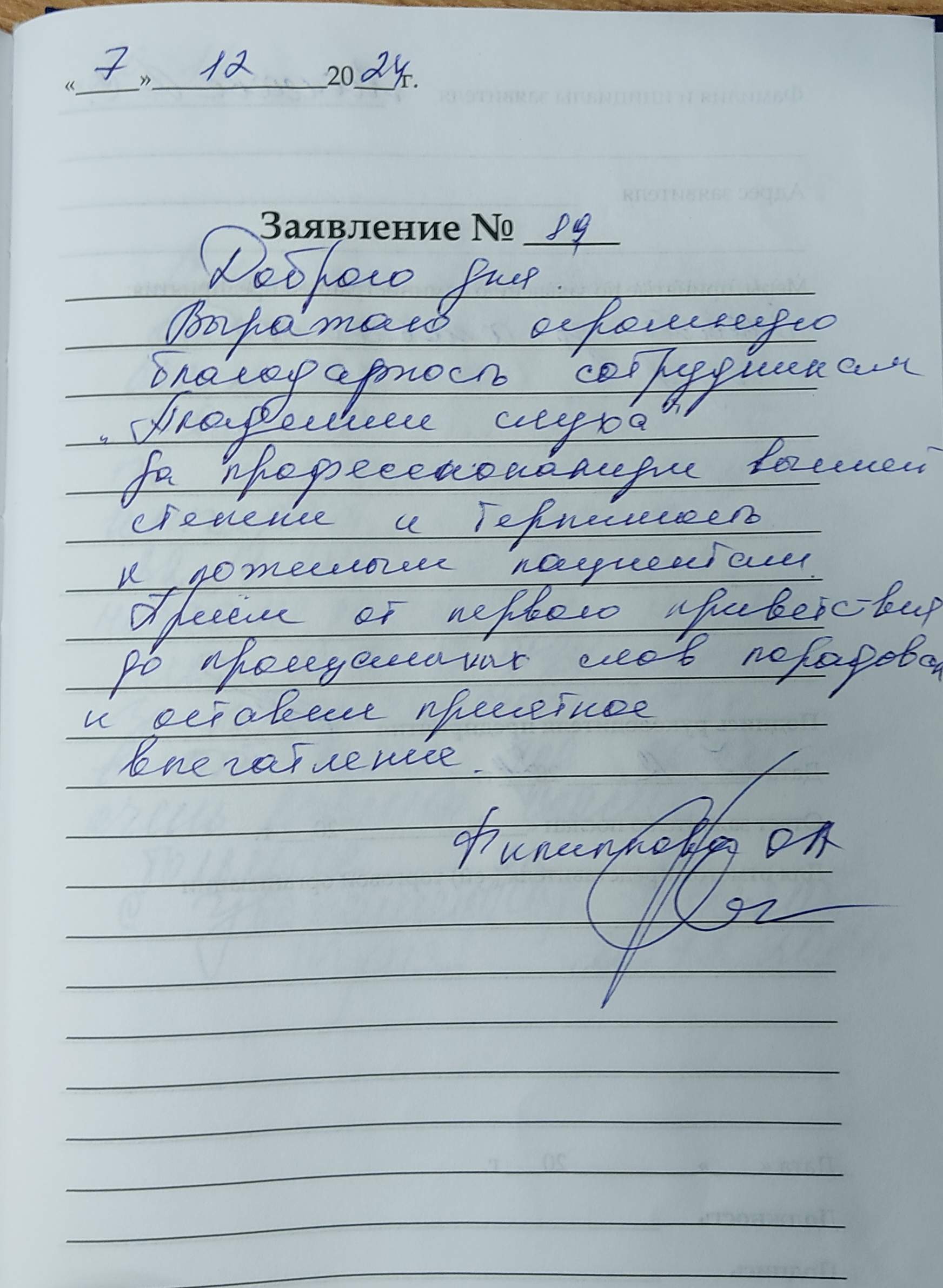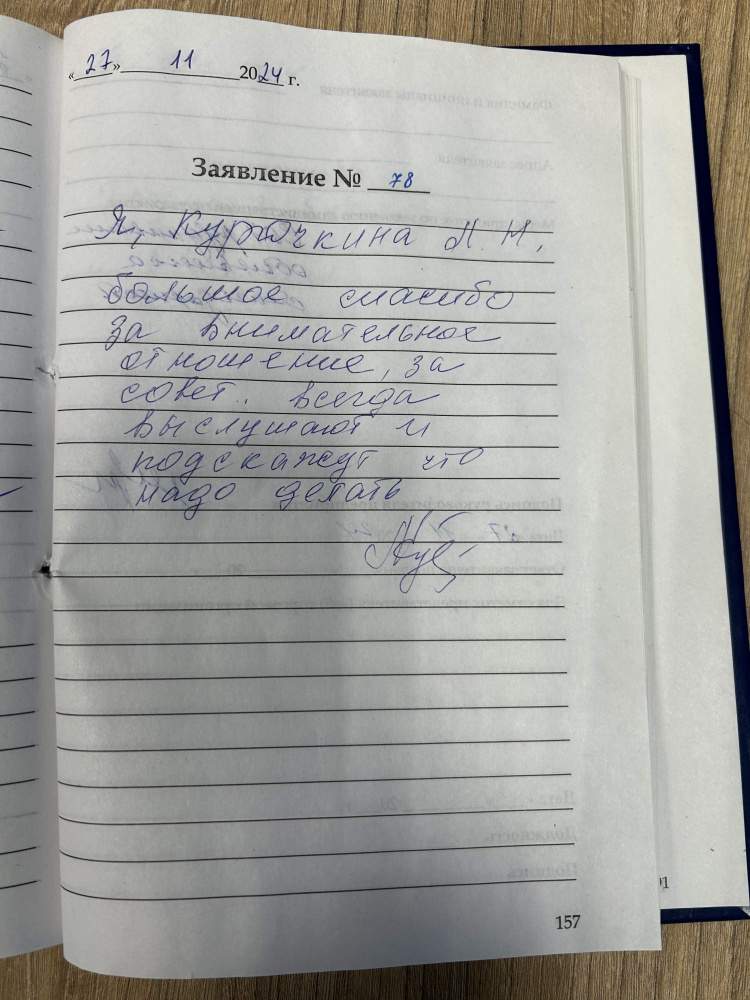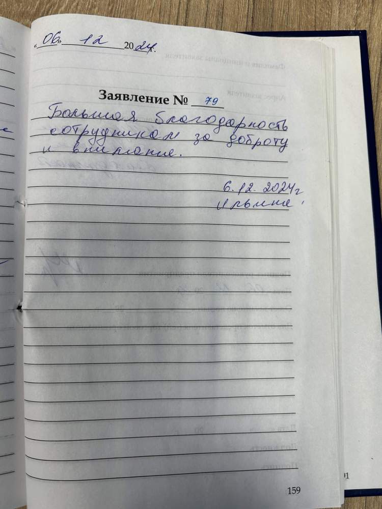 Ильина Галина Александровна Большая благодарность сотрудникам за доброту и внимание 06.12.2024 г