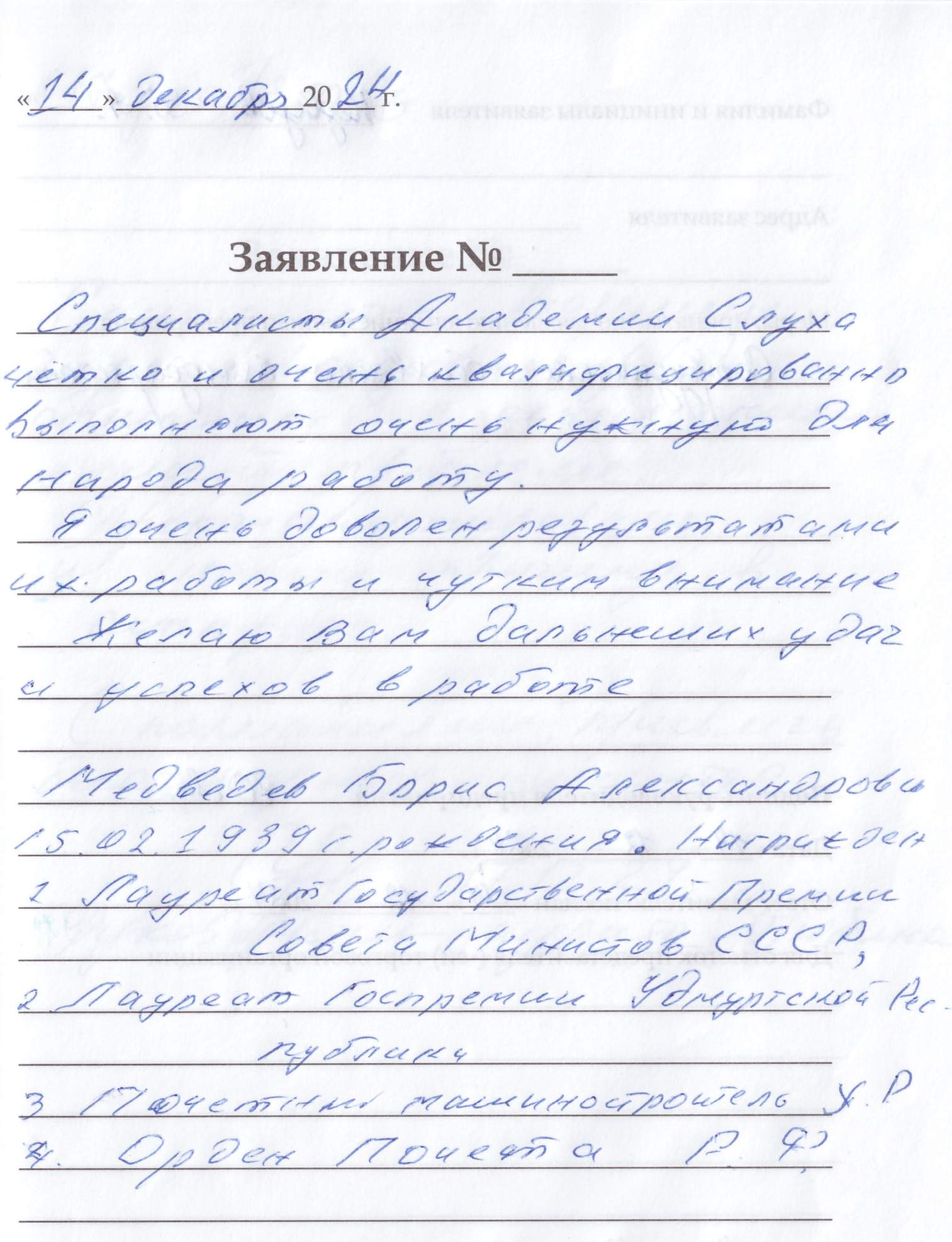 Специалисты Академии Слуха четко и очень квалифицированно выполняют очень нужную для народа работу. Очень доволен результатами их работы и чутким вниманием. Желаю вам дальнейших удач и успехов в работе.